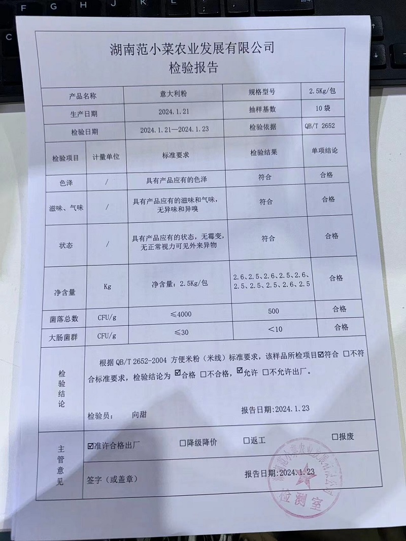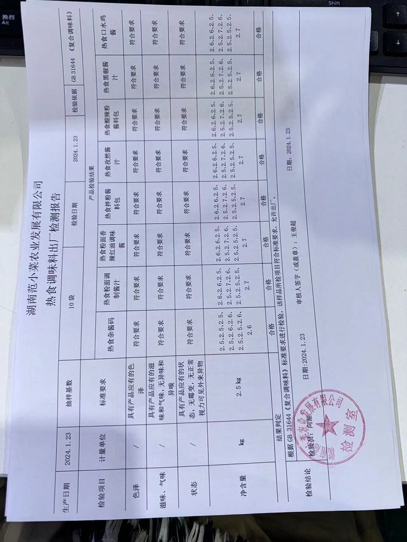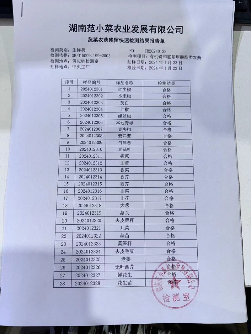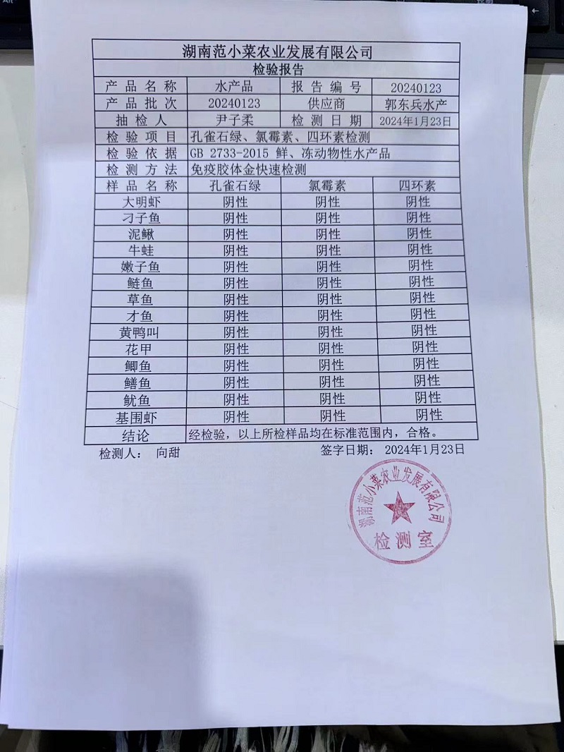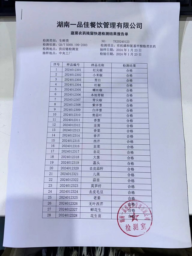 范小菜、一品佳热食肉制品、调味料、意面、农残、水产、中点、速冻米面制品2024.1.23