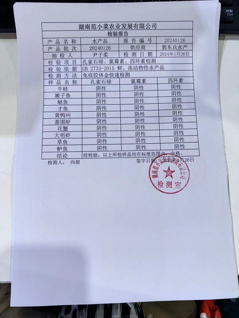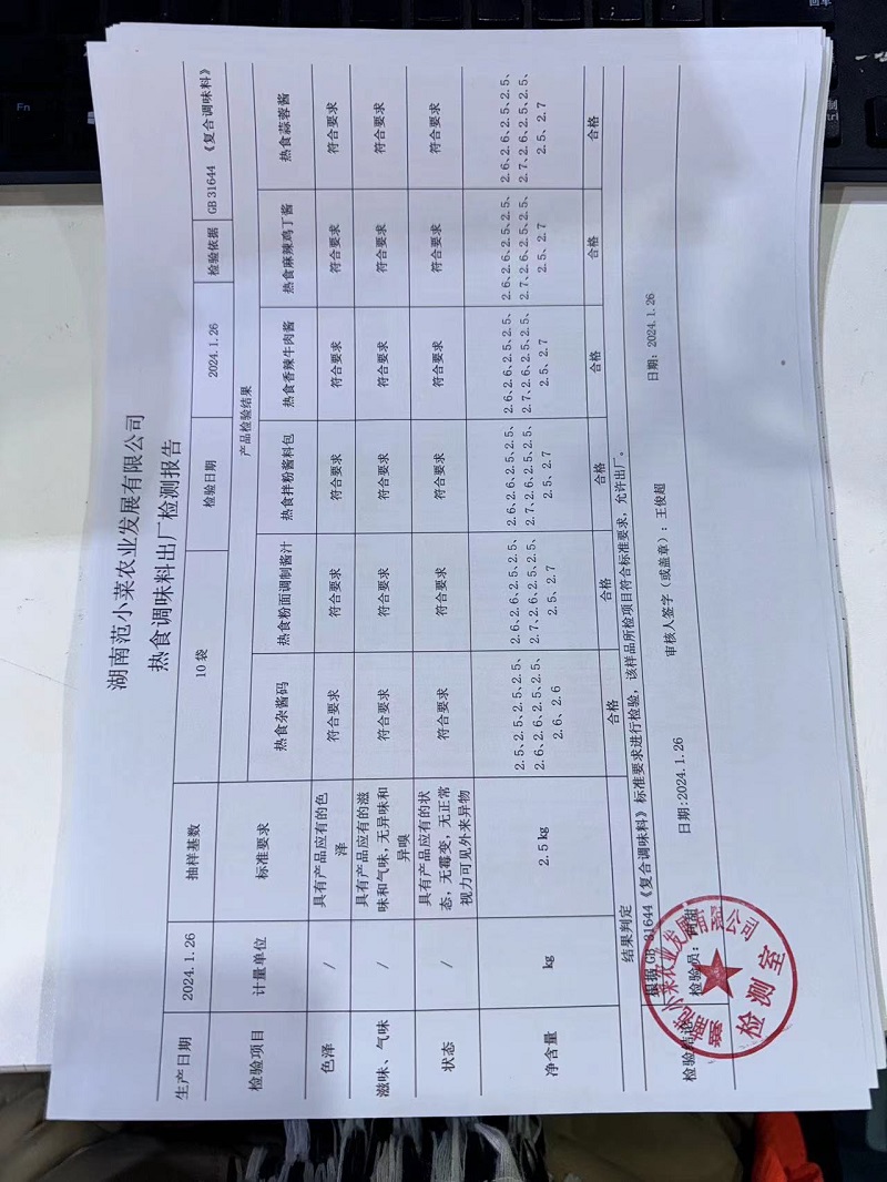 范小菜、一品佳热食肉制品、调味料、意面、农残、水产、中点、速冻米面制品2024.1.26
