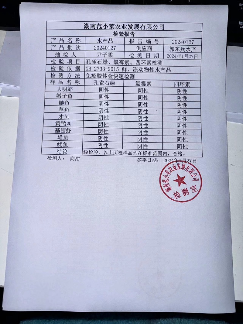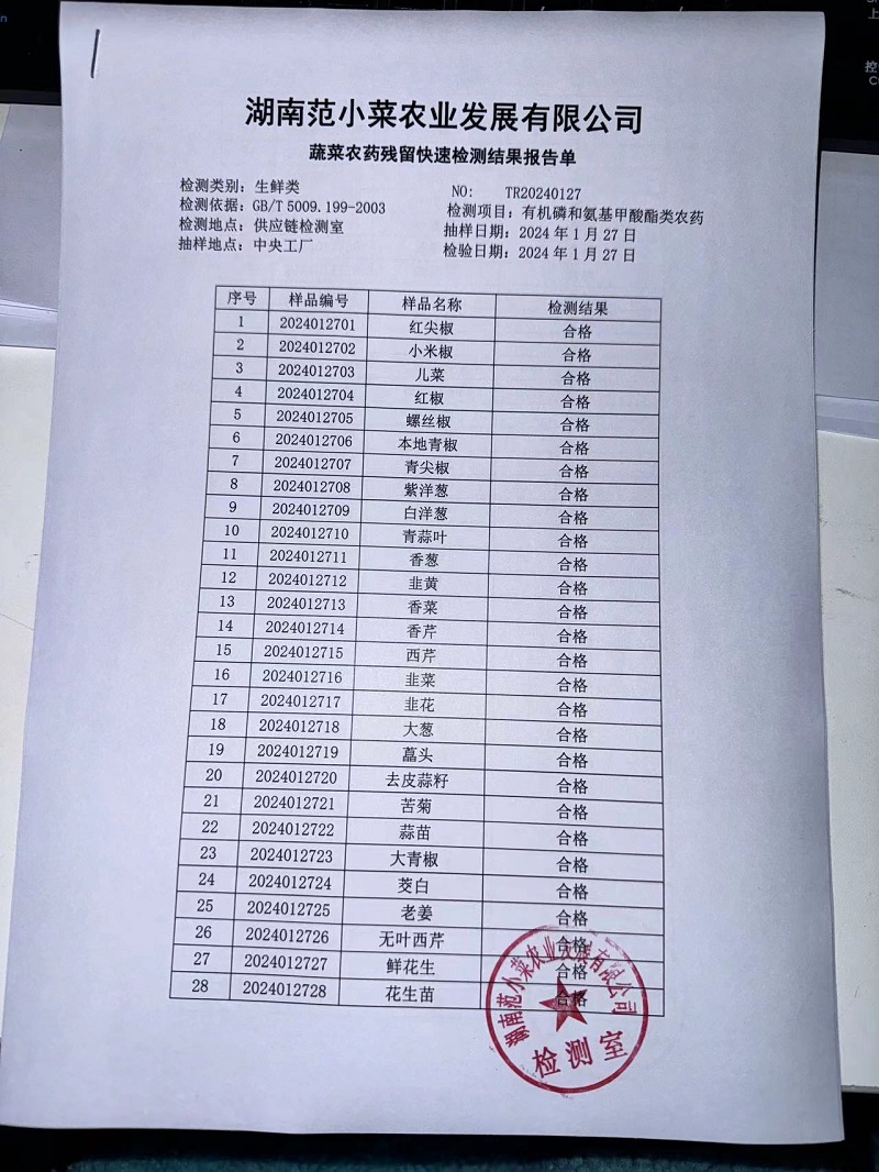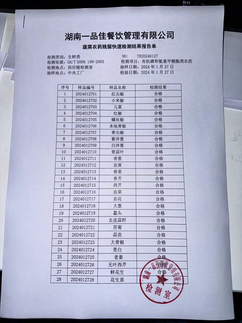 范小菜、一品佳热食肉制品、调味料、意面、农残、水产、中点、速冻米面制品2024.1.27