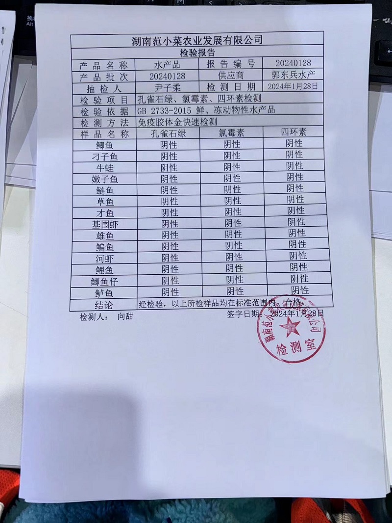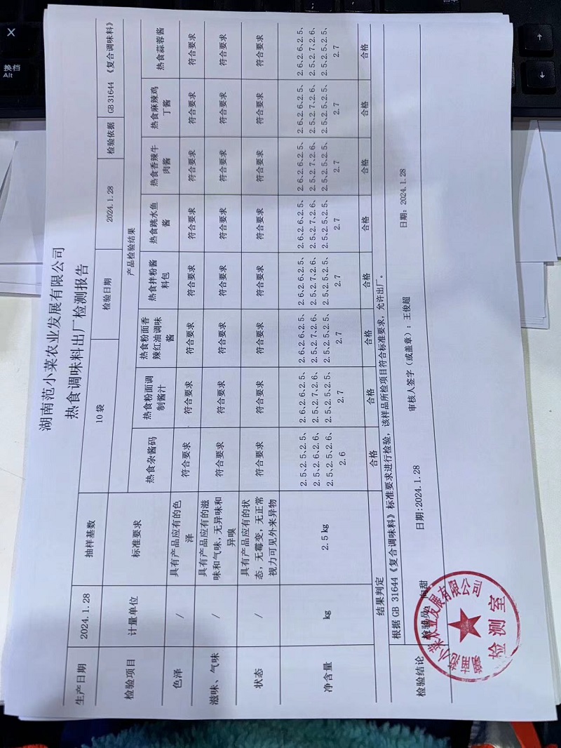 范小菜、一品佳热食肉制品、调味料、意面、农残、水产、中点、速冻米面制品2024.1.28