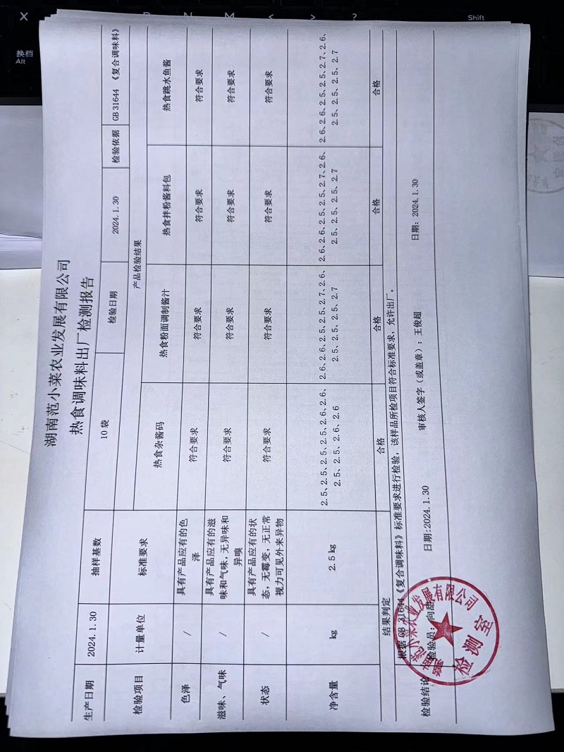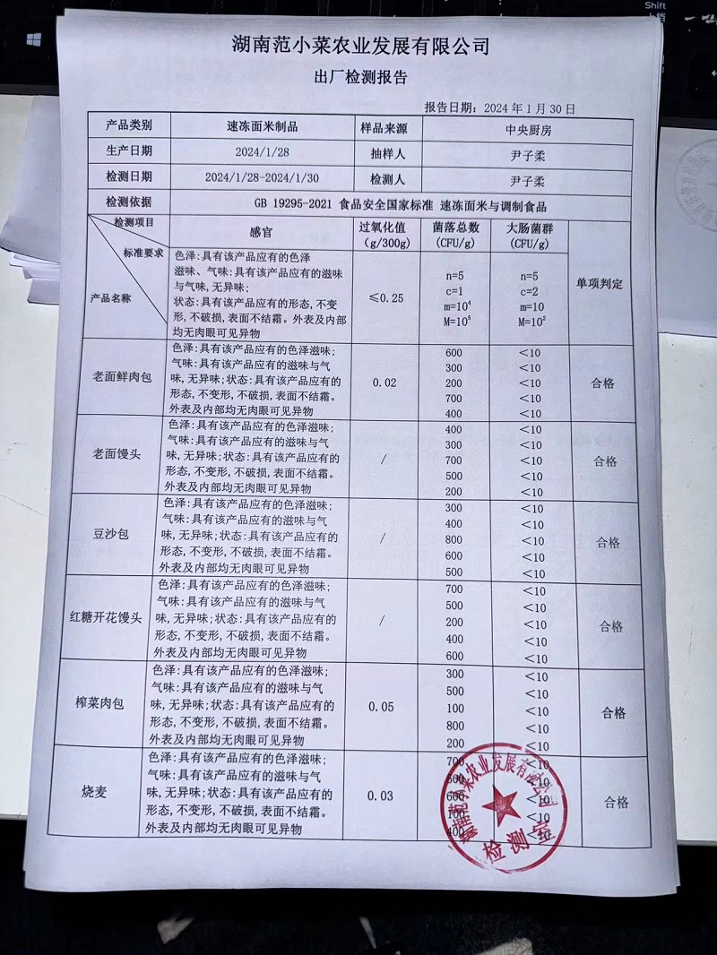 范小菜、一品佳热食肉制品、调味料、意面、农残、水产、中点、速冻米面制品2024.1.30