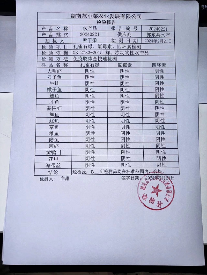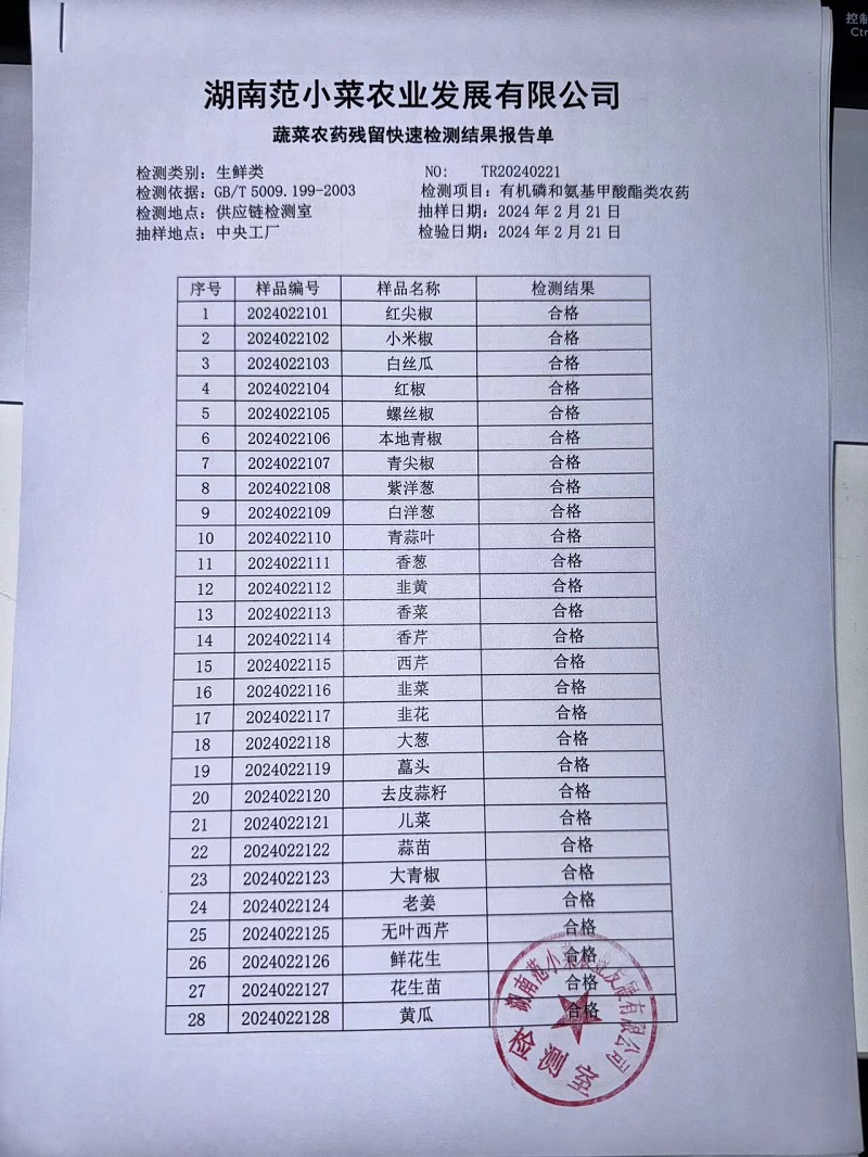 范小菜、一品佳热食肉制品、调味料、意面、农残、水产、中点、速冻米面制品2024.2.21