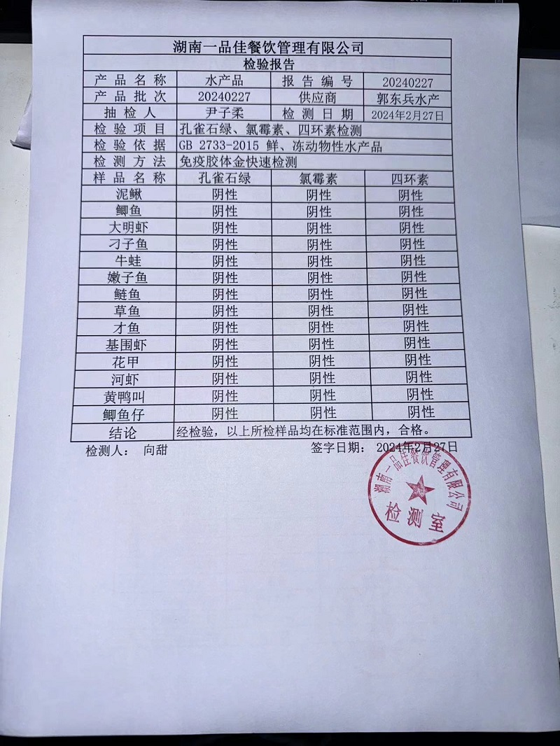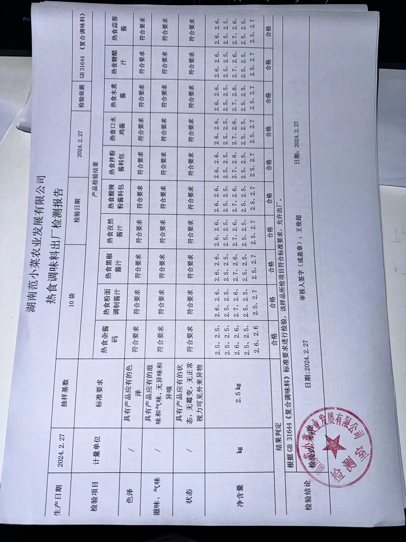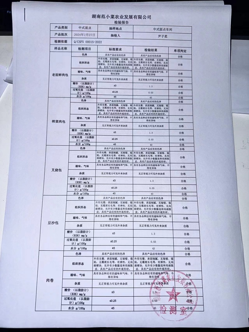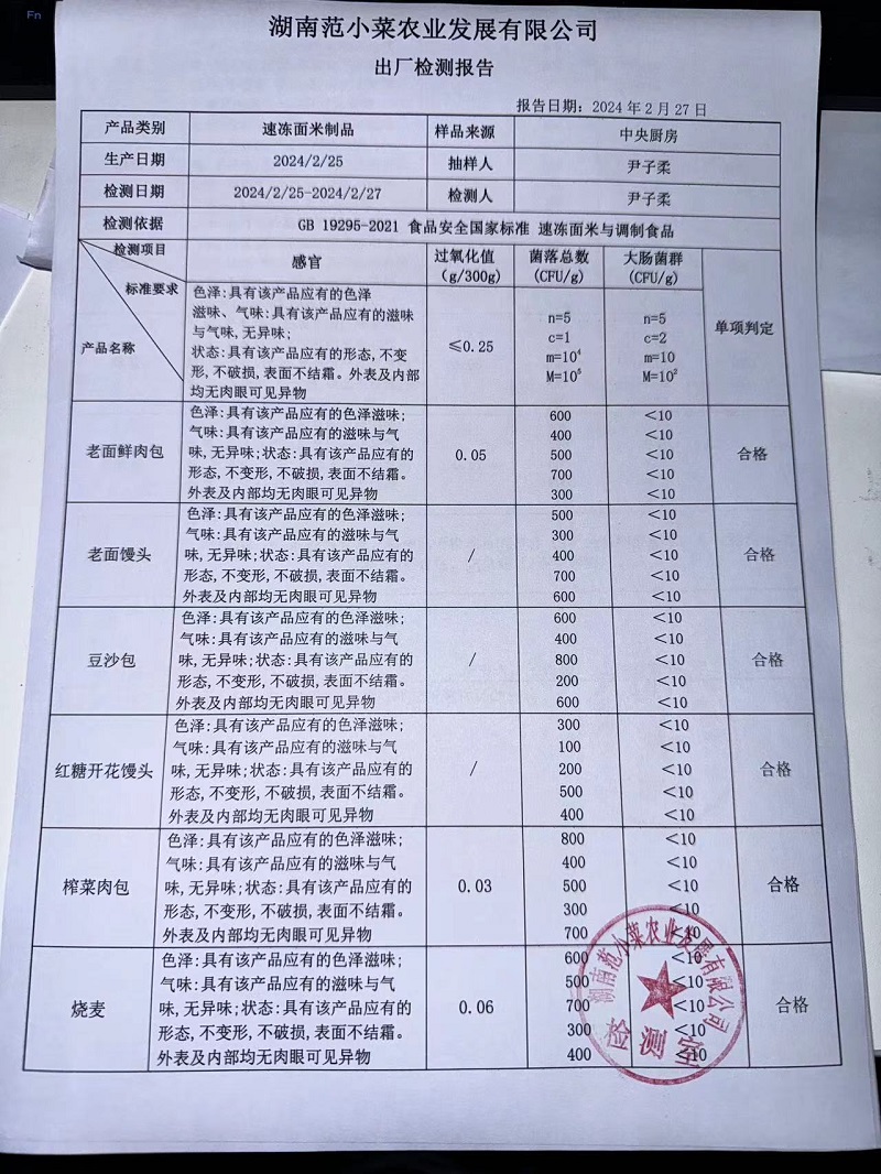 范小菜、一品佳热食肉制品、调味料、意面、农残、水产、中点、速冻米面制品2024.2.27