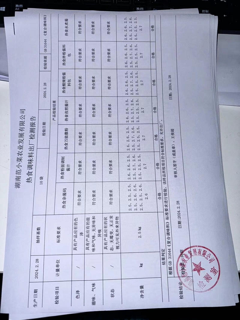 范小菜、一品佳热食肉制品、调味料、意面、农残、水产、中点、速冻米面制品2024.2.28