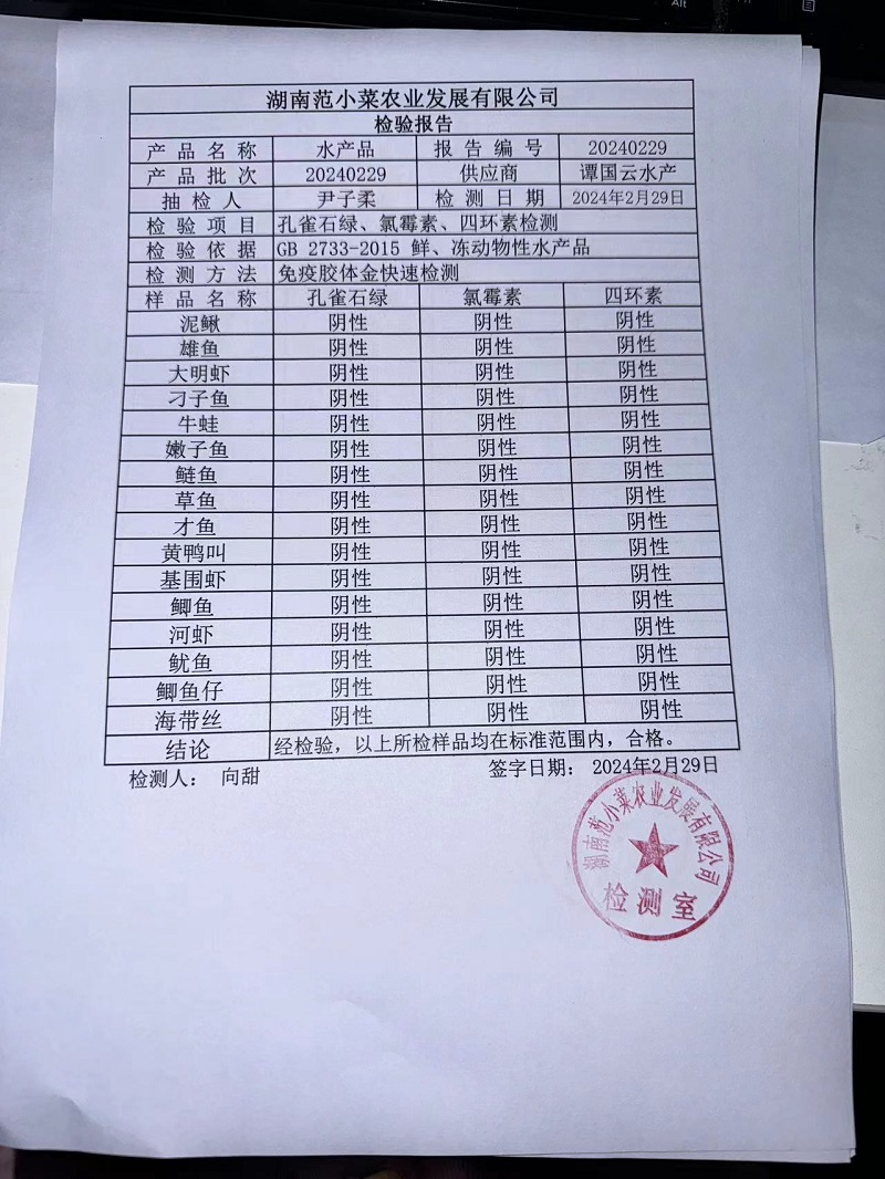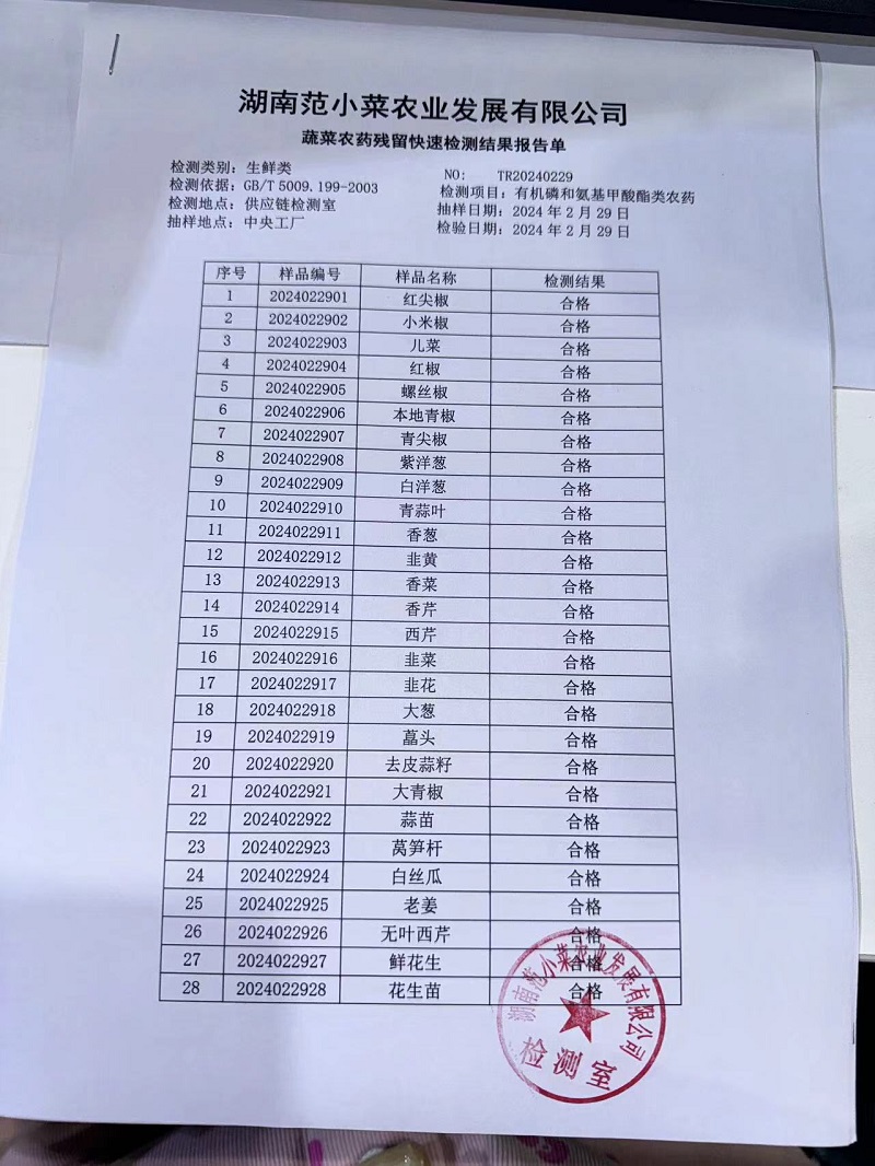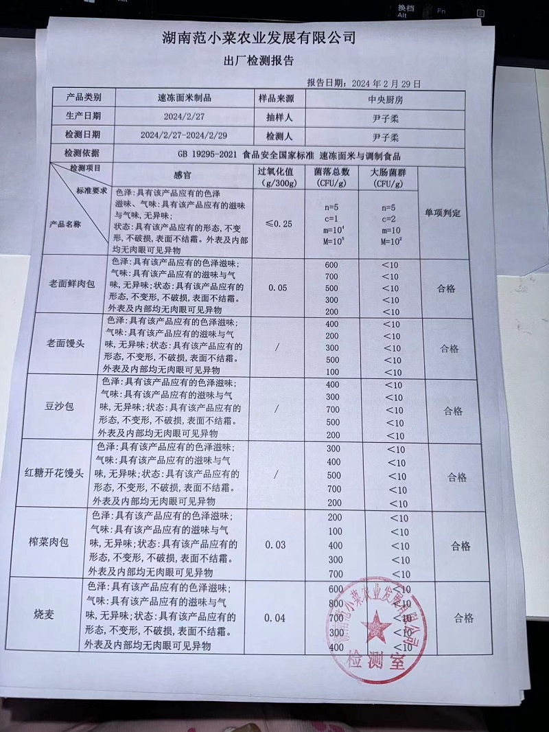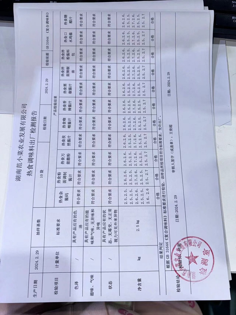 范小菜、一品佳热食肉制品、调味料、意面、农残、水产、中点、速冻米面制品2024.2.29