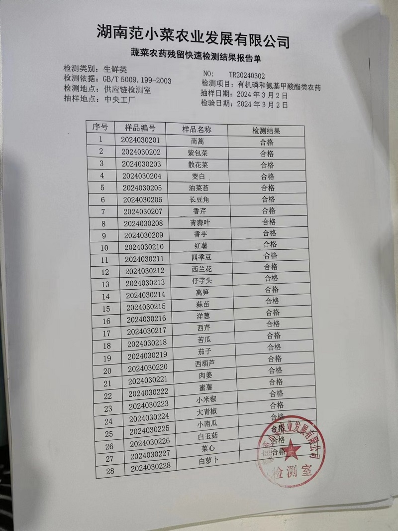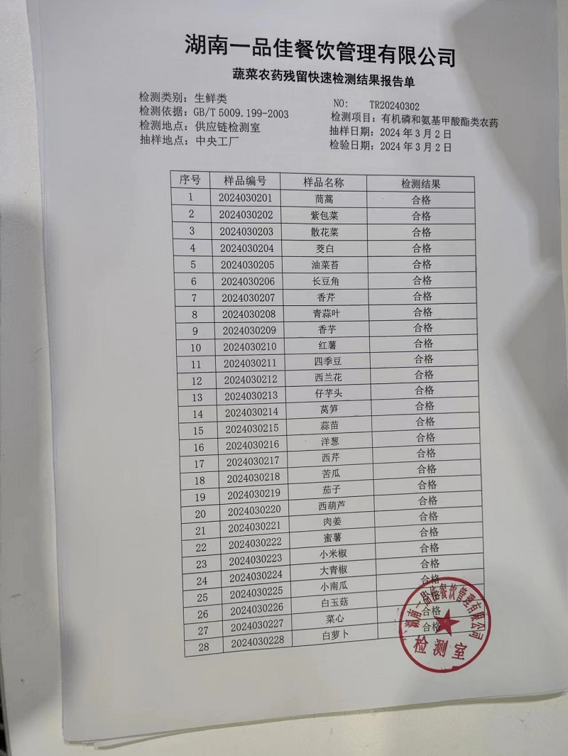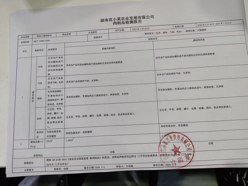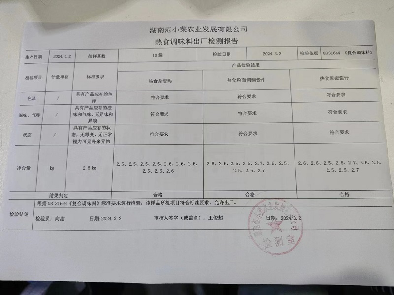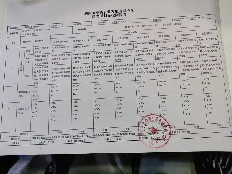 范小菜、一品佳热食肉制品、意粉、调味料、 中点、水产、农残