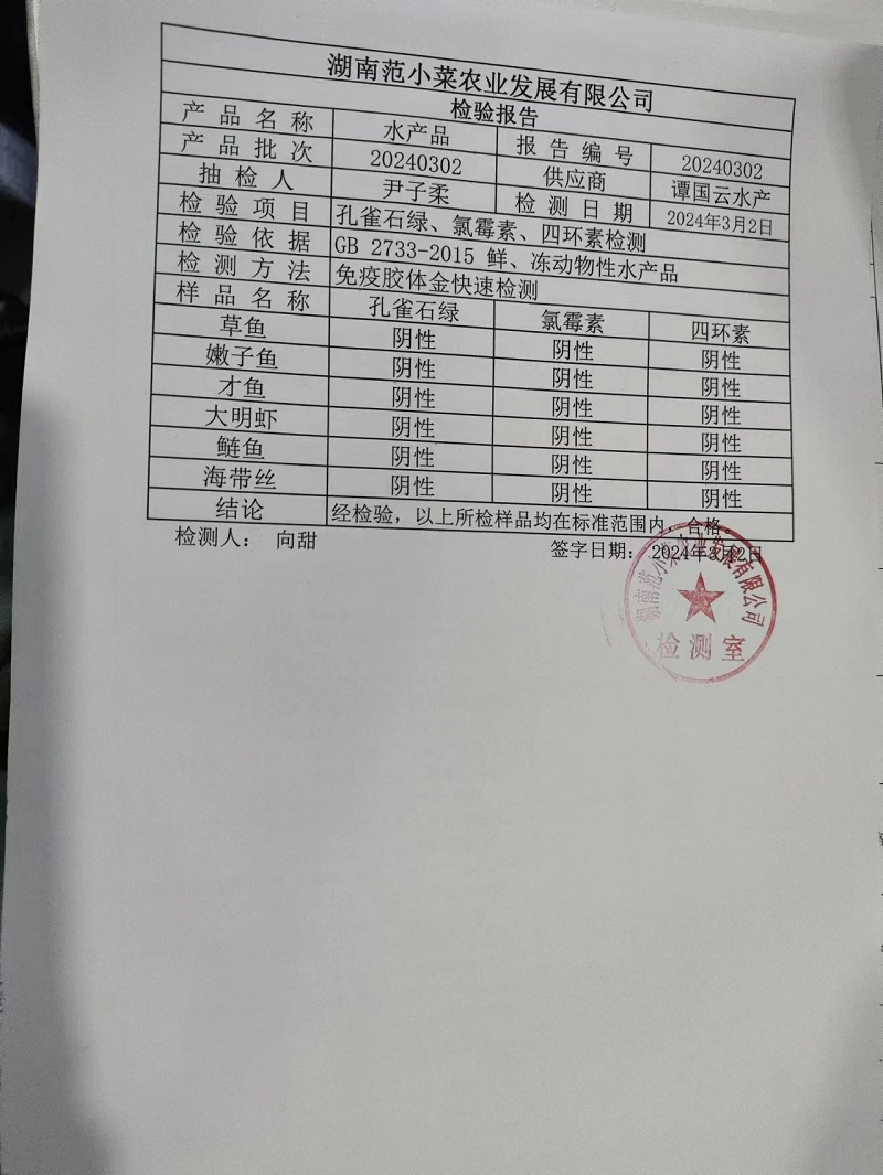 范小菜热食肉制品、调味料、 一品佳、范小菜中点、水产、农残、速冻米面制品2024.3.2