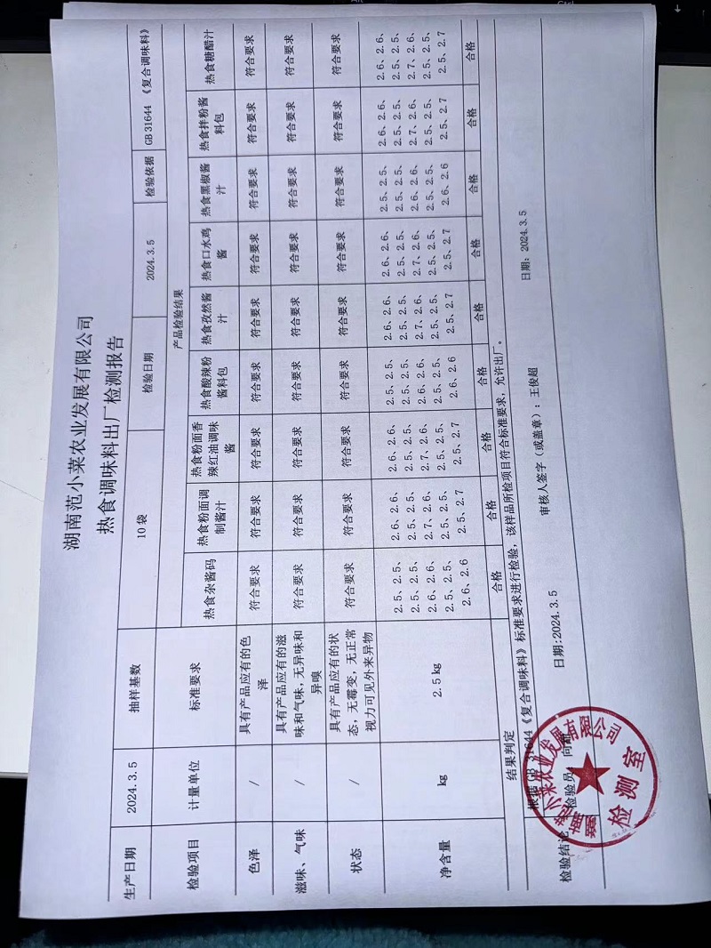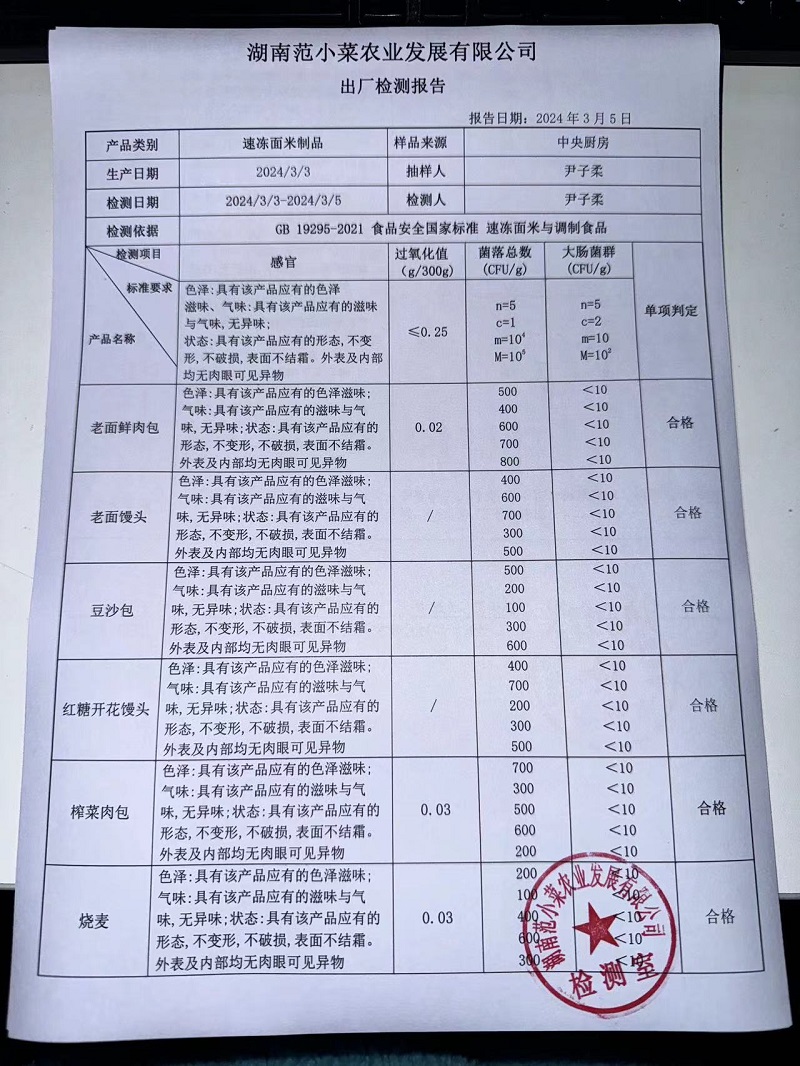 范小菜、一品佳热食肉制品、调味料、意面、农残、水产、中点、速冻米面制品2024.3.5