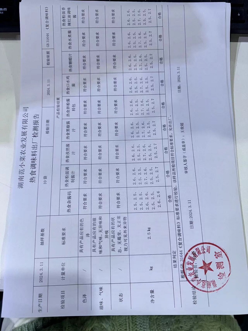 范小菜、一品佳热食肉制品、调味料、意面、农残、水产、中点、速冻米面制品2024.3.11