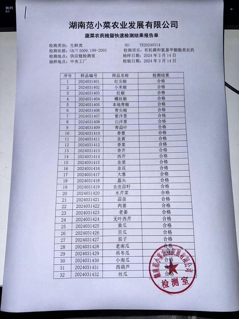 范小菜、一品佳热食肉制品、调味料、意面、农残、水产、中点、速冻米面制品2024.3.14
