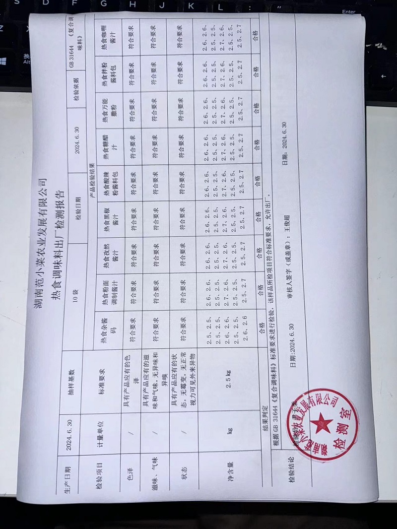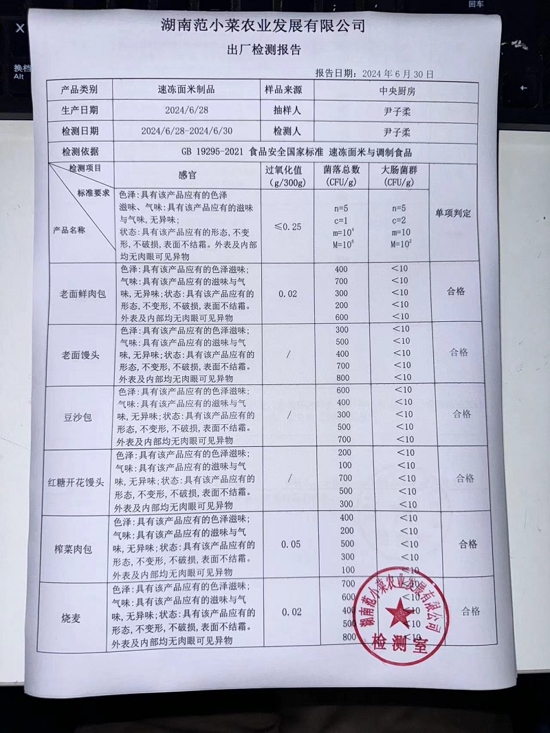 范小菜、一品佳热食肉制品、调味料、意面、农残、水产、中点、速冻米面制品2024.6.30