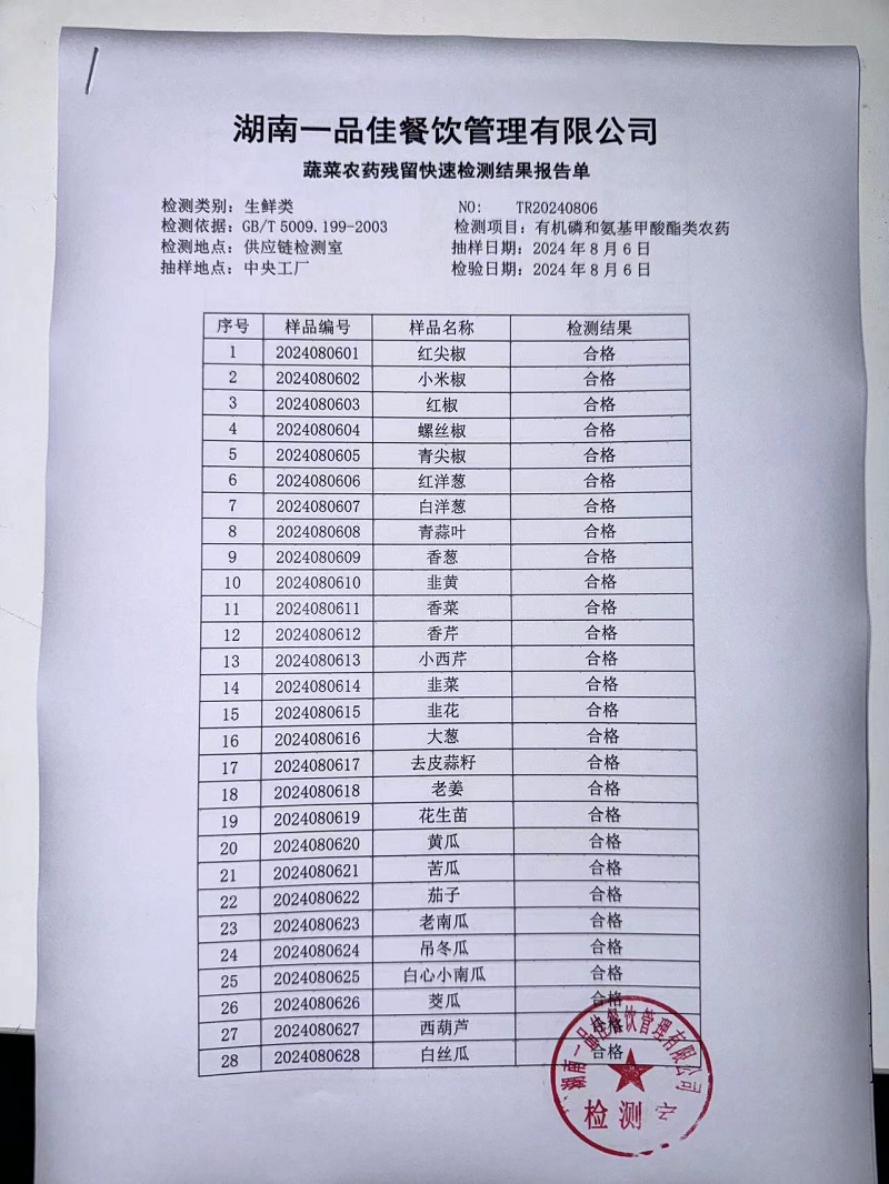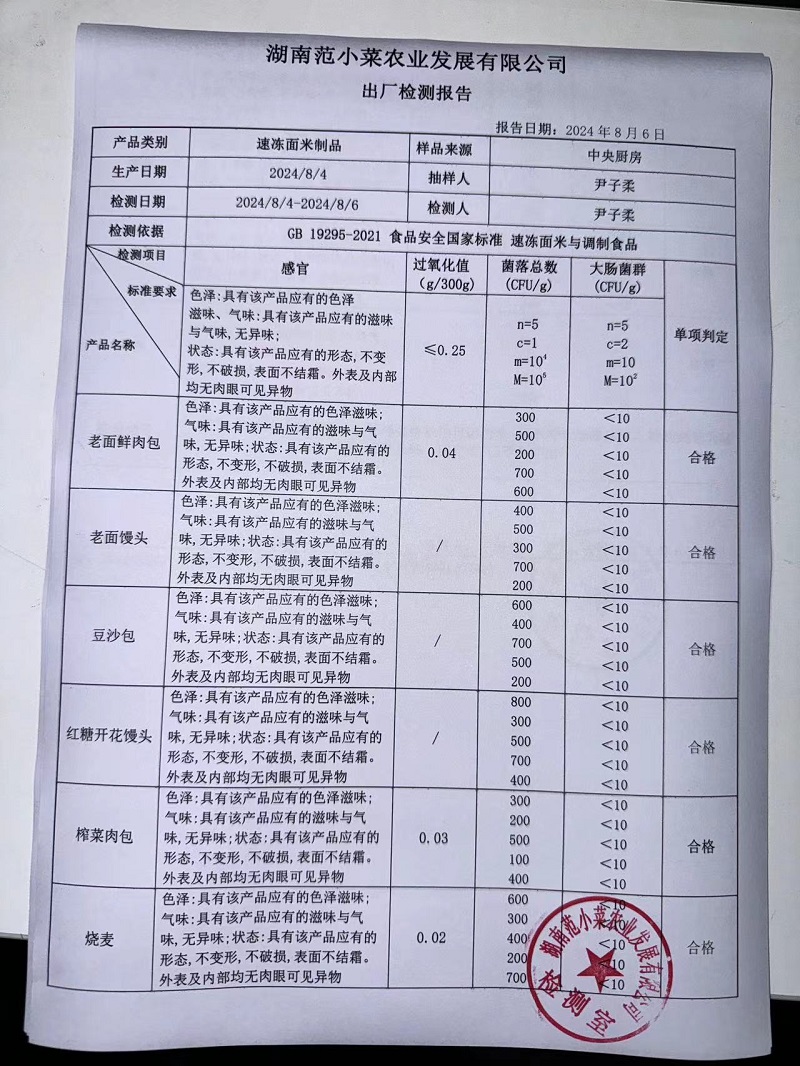 范小菜、一品佳热食肉制品、调味料、意面、农残、水产、中点、速冻米面制品2024.8.6