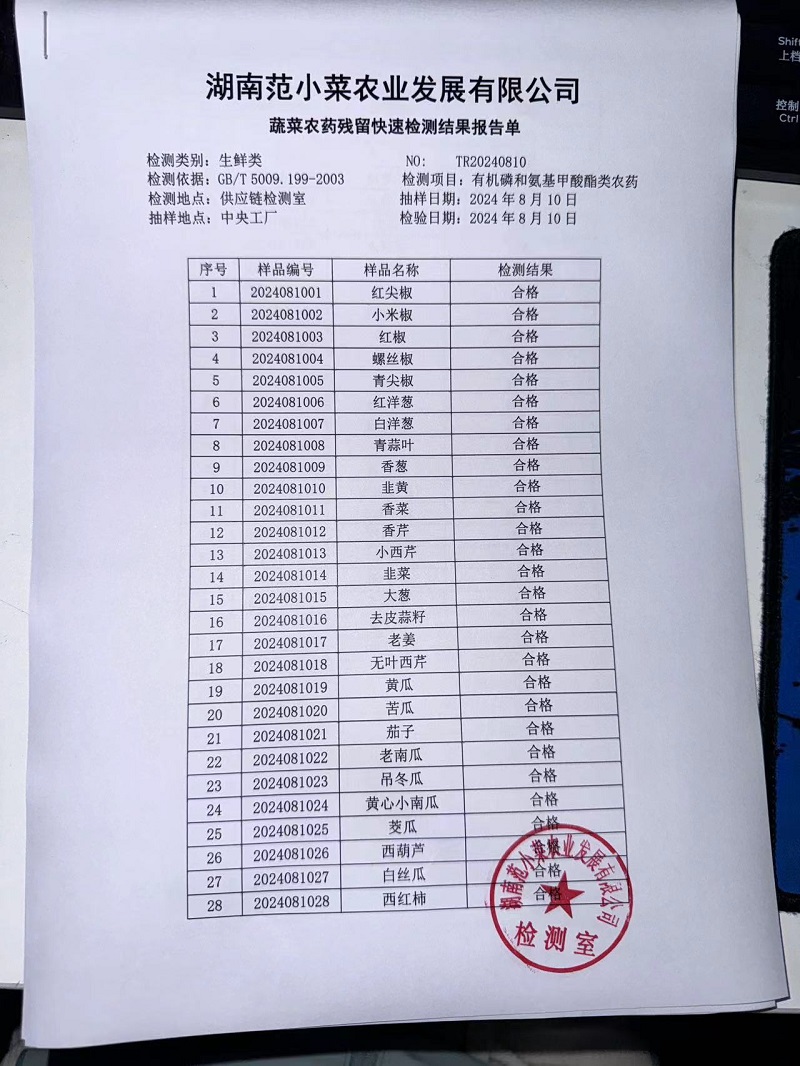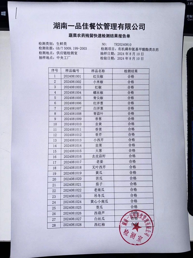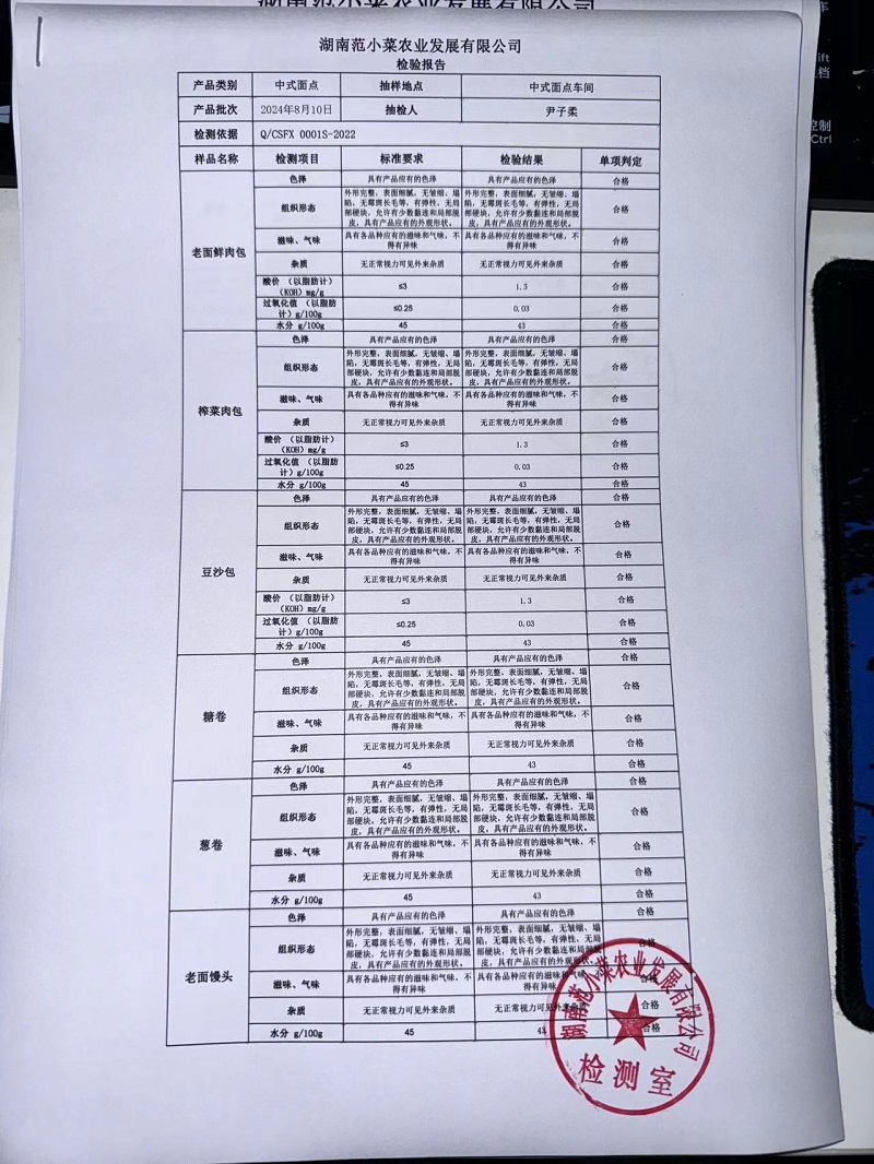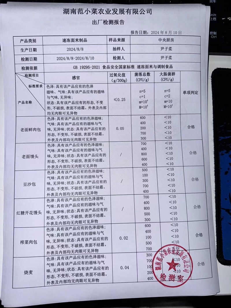 范小菜、一品佳热食肉制品、调味料、意面、农残、水产、中点、速冻米面制品2024.8.10