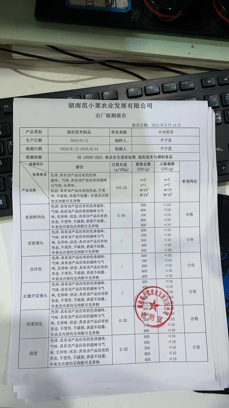 范小菜、一品佳热食肉制品、调味料、意面、农残、水产、中点、速冻米面制品2024.8.14