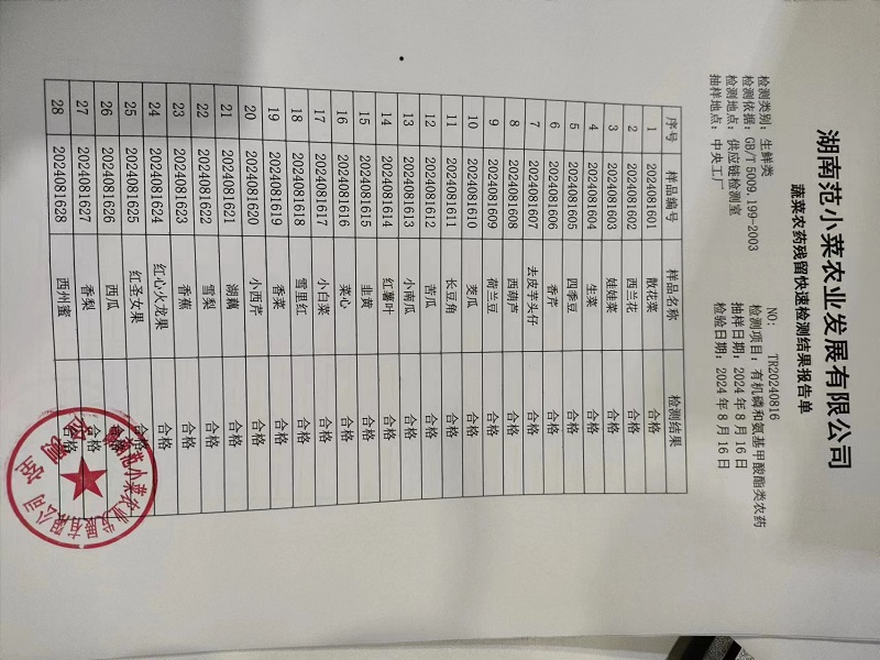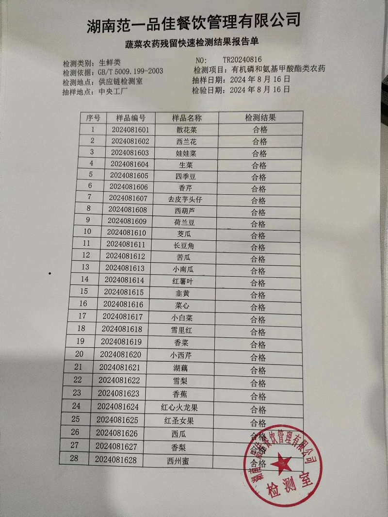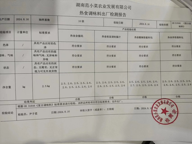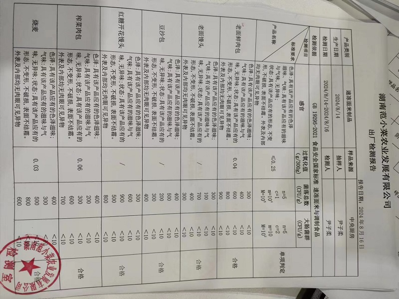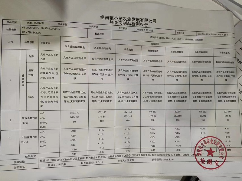 范小菜、一品佳热食肉制品、调味料、农残、水产、中点、速冻米面制品2024.8.16