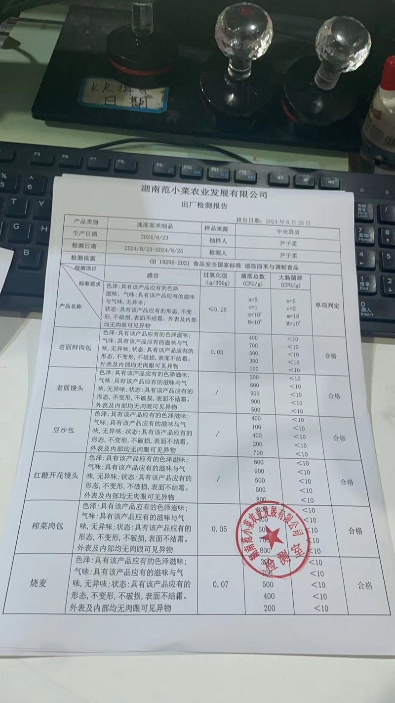 范小菜、一品佳热食肉制品、调味料、意面、农残、水产、中点、速冻米面制品2024.8.25