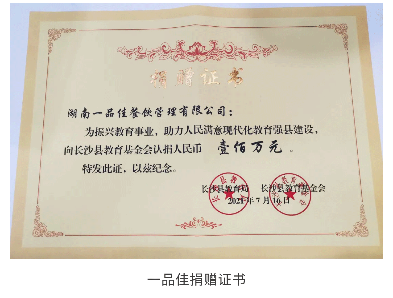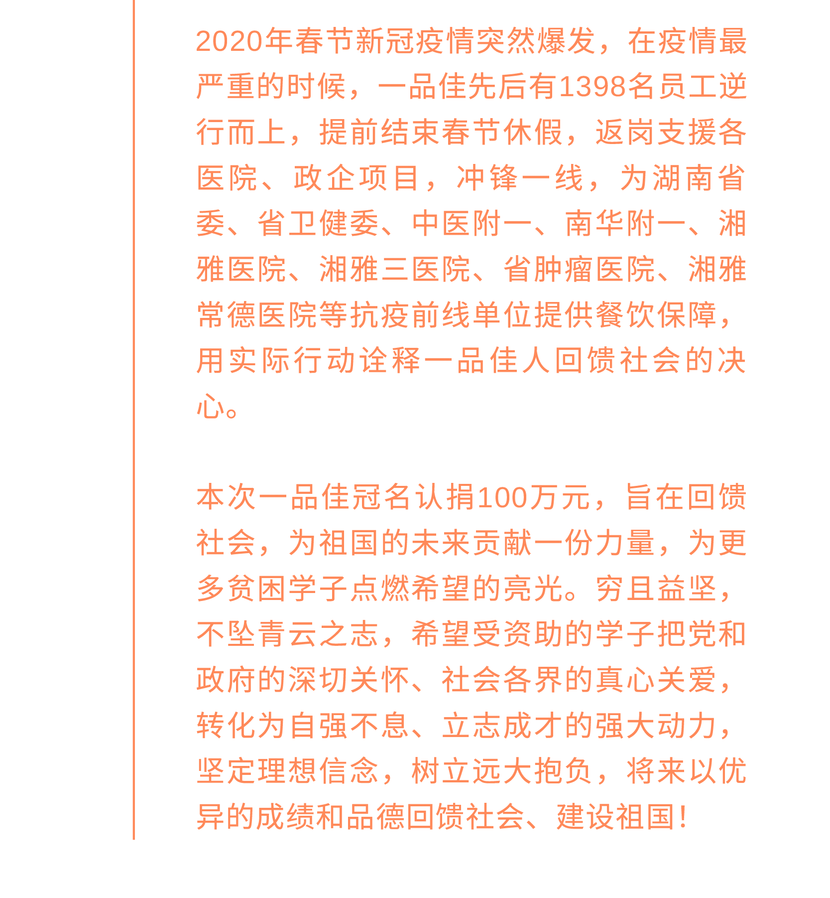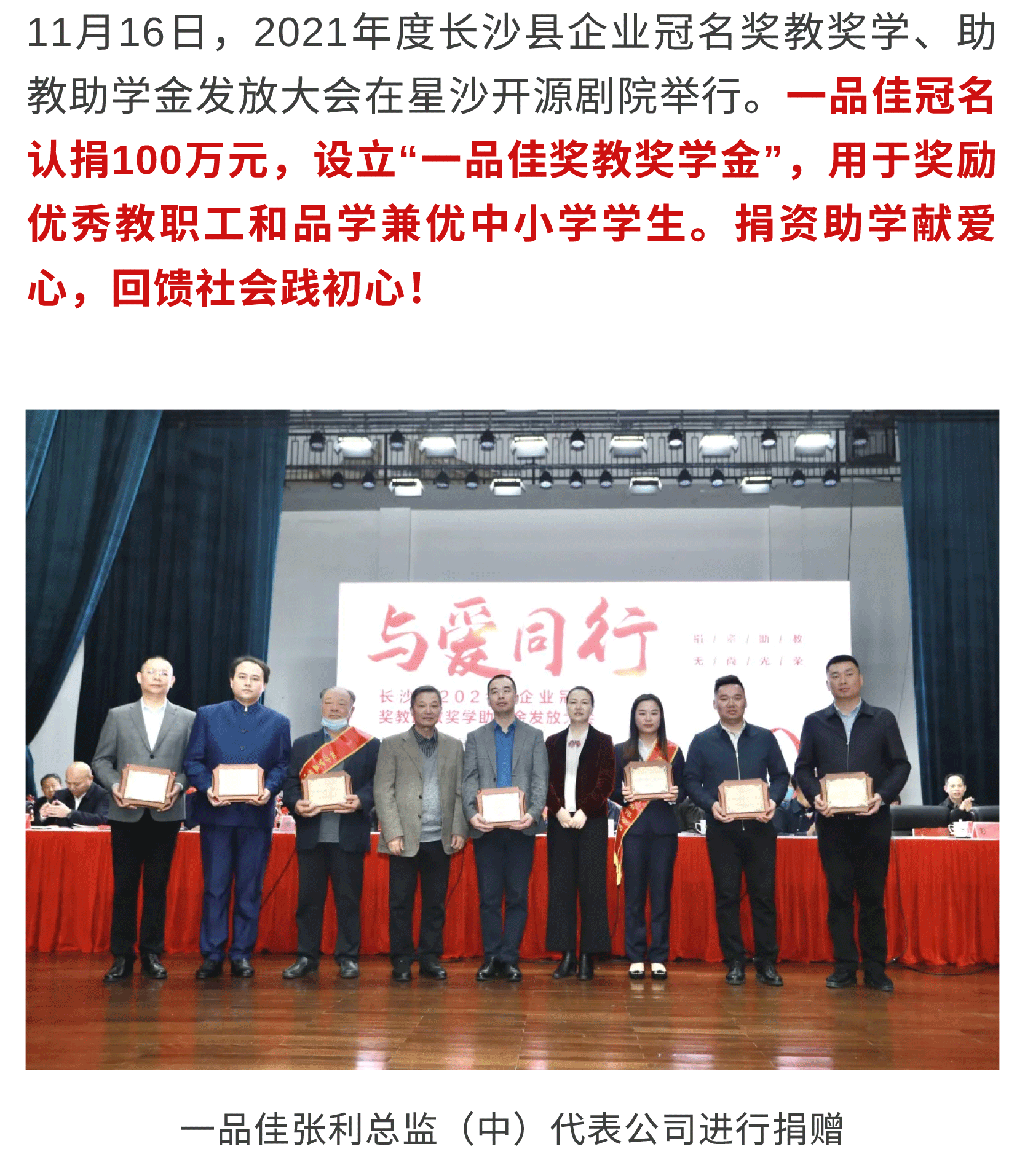 捐资助学回馈社会,一品佳爱心捐赠100万元!