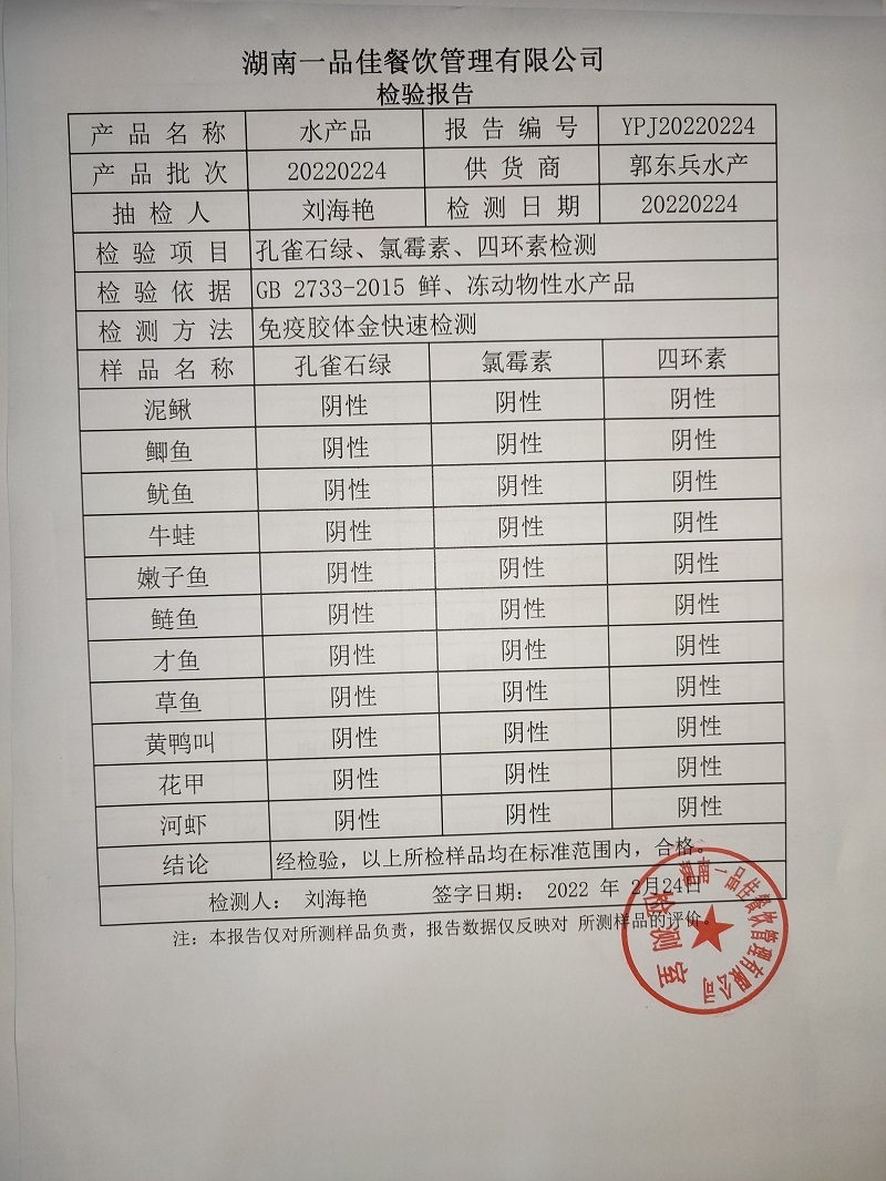 一品佳水产、中点、农残20220225
