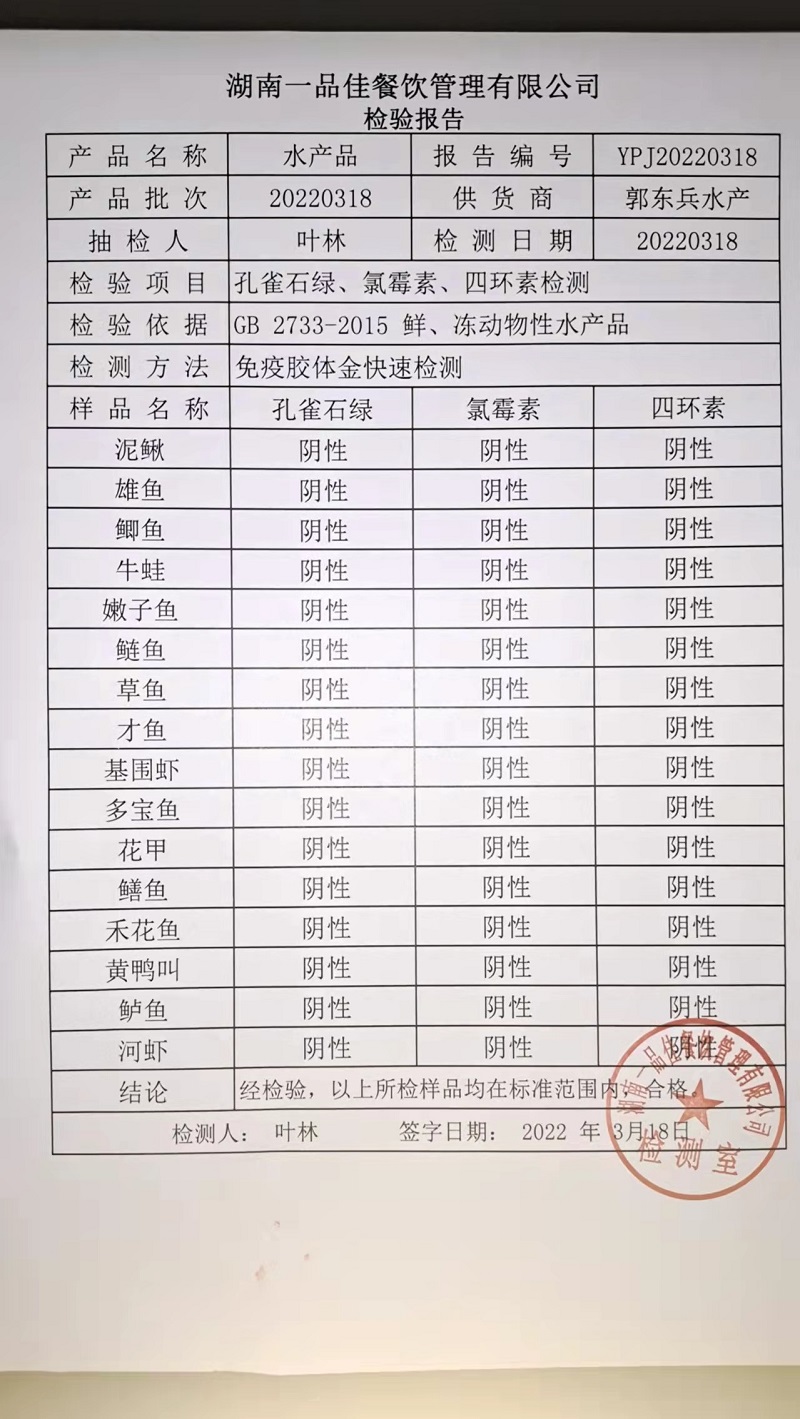 一品佳中点、水产、农残2022.03.18