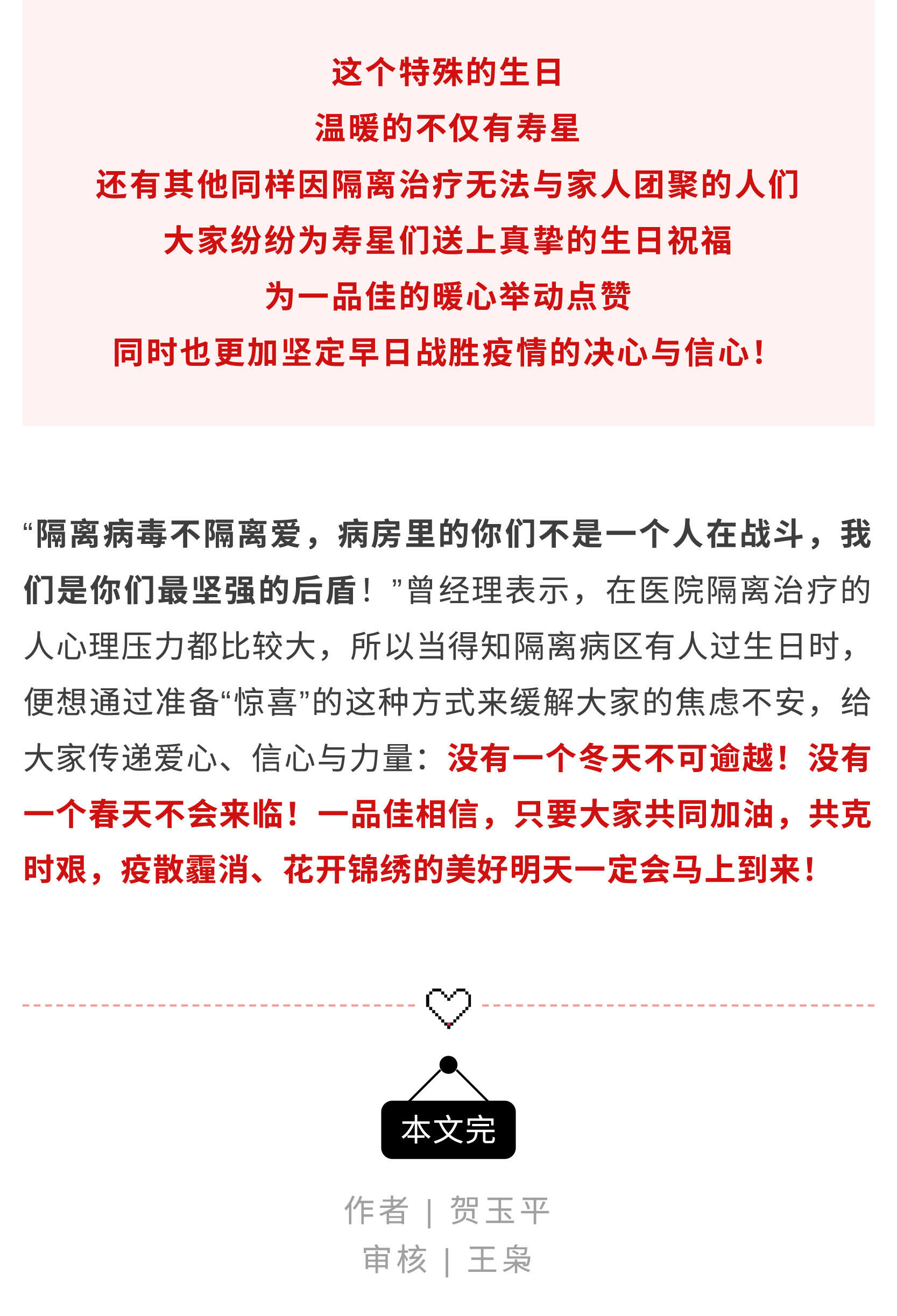 隔离病毒不隔离爱!一品佳给隔离病区的他们过了一个特殊生日