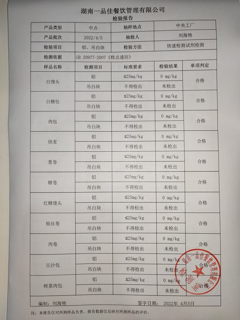 一品佳中点、水产、农残2022.04.06