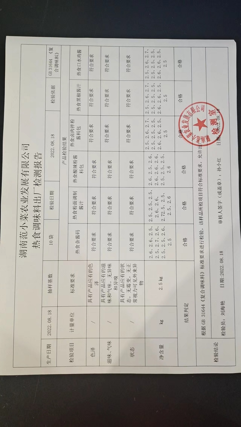 范小菜热食肉制品、调味料、 一品佳中点、水产、农残2022.08.18