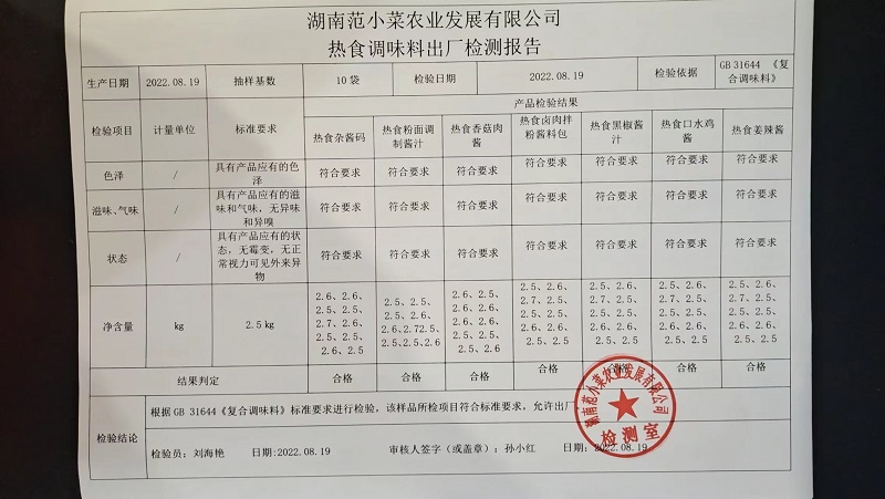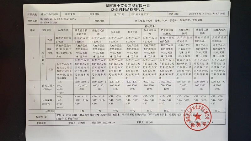 范小菜热食肉制品、调味料、 一品佳中点、水产、农残2022