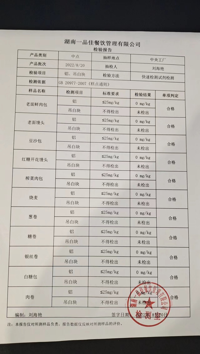 范小菜热食肉制品、调味料、意面、 一品佳中点、水产、农残2022.08.20