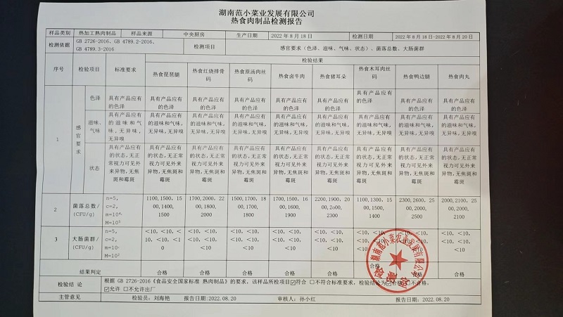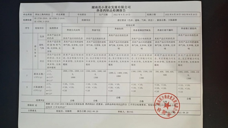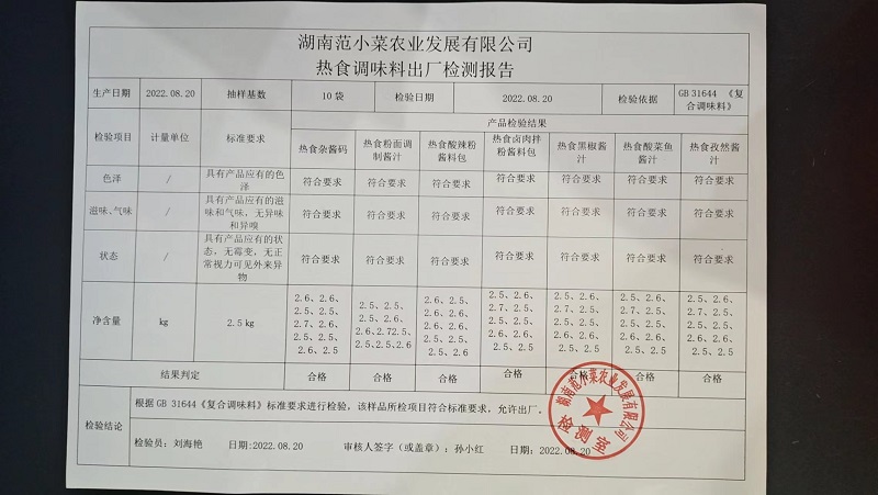 范小菜热食肉制品、调味料、 一品佳中点、水产、农残2022