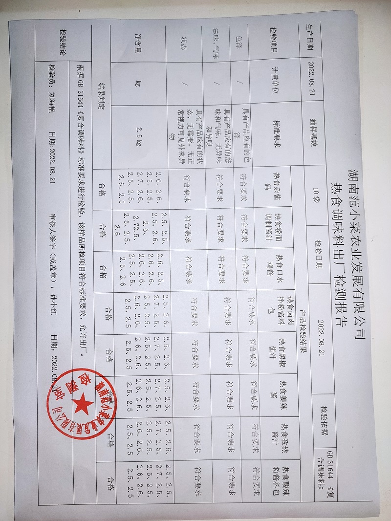 范小菜热食肉制品、调味料、 一品佳中点、水产、农残2022.08.21