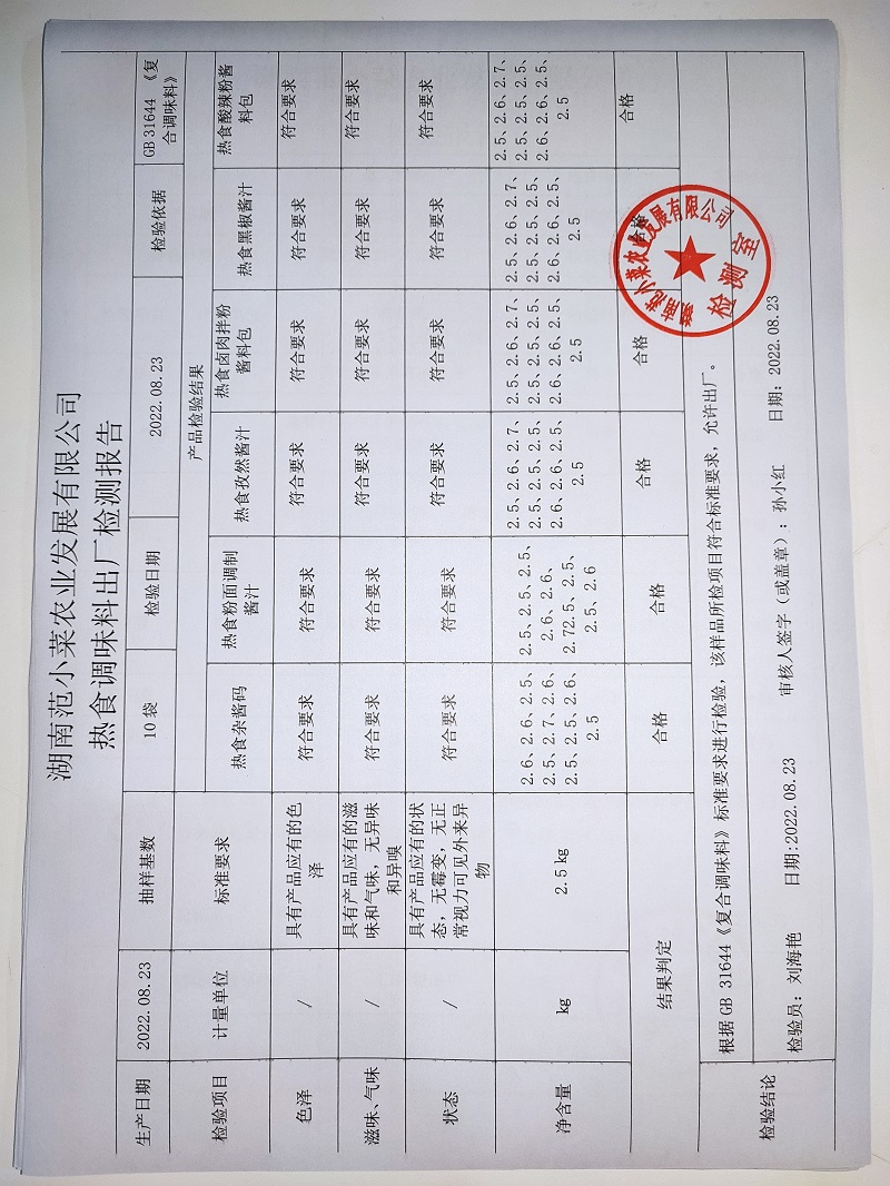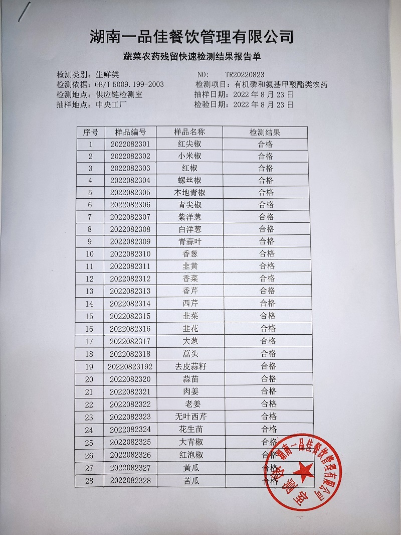 范小菜热食肉制品、调味料、意大利面、 一品佳中点、水产、农残2022.08.23