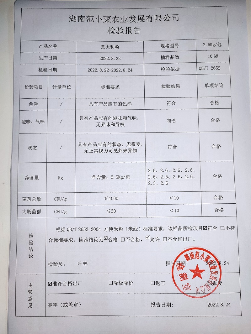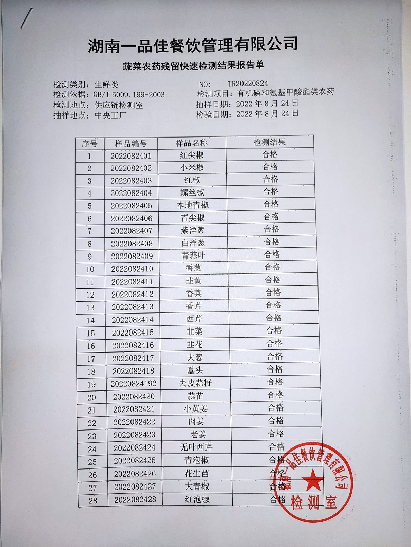 范小菜热食肉制品、调味料、意大利面、 一品佳中点、水产、农残2022.8.24