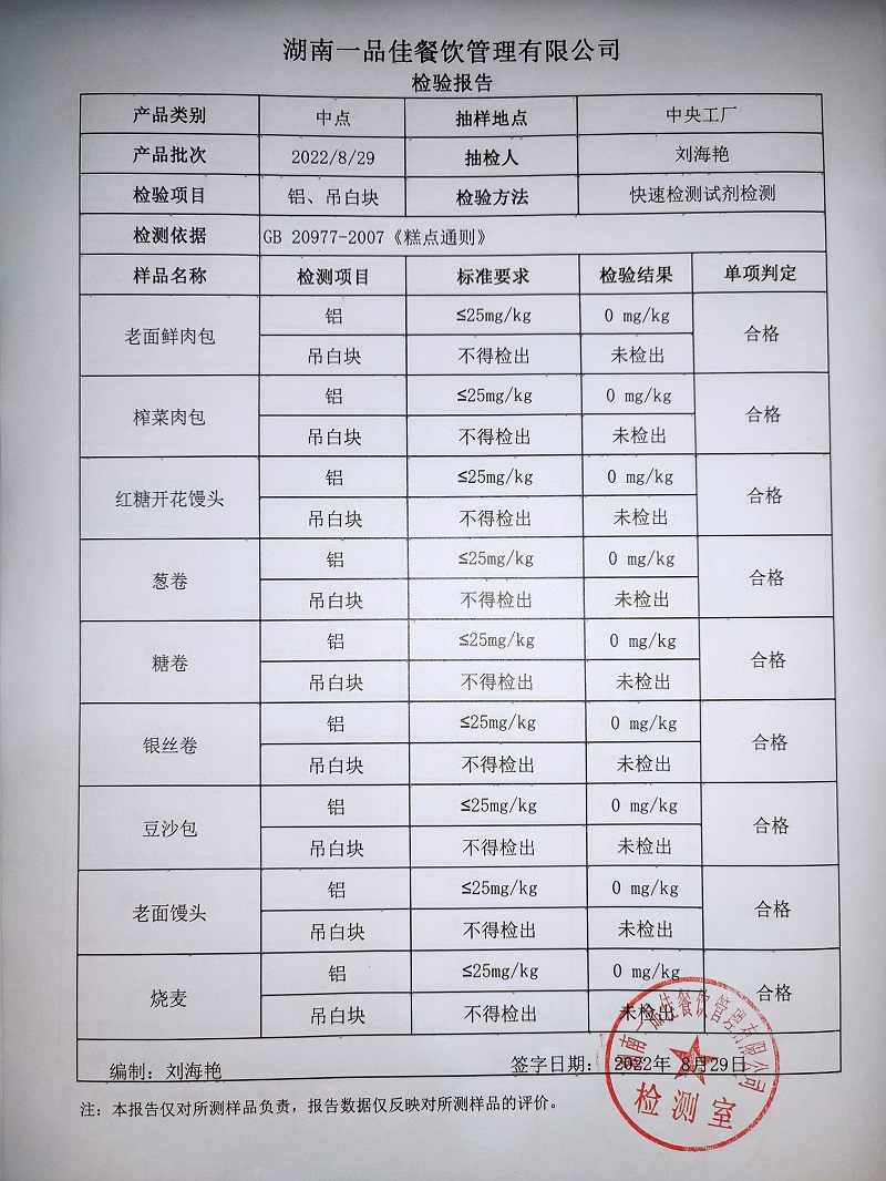 范小菜热食肉制品、调味料、 一品佳中点、水产、农残2022.08.29