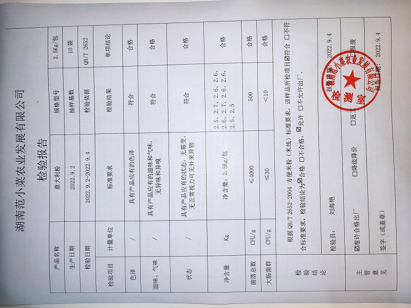 范小菜热食肉制品、热食调味料、意面、一品佳中点、水产、农残检测报告2022.9.4