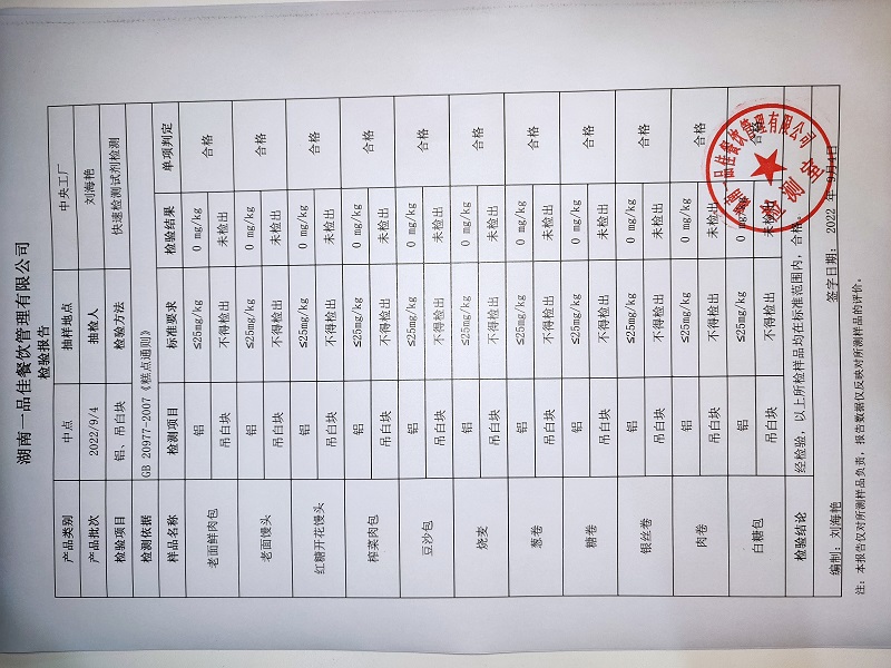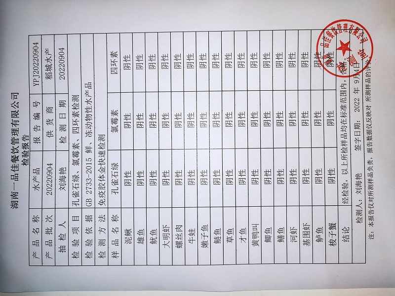 范小菜热食肉制品、热食调味料、一品佳中点、水产、农残检测报告