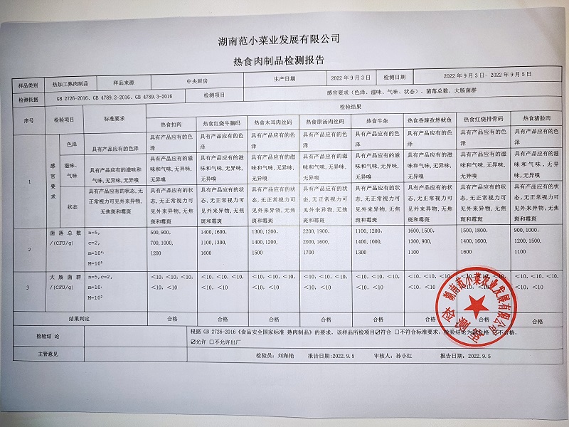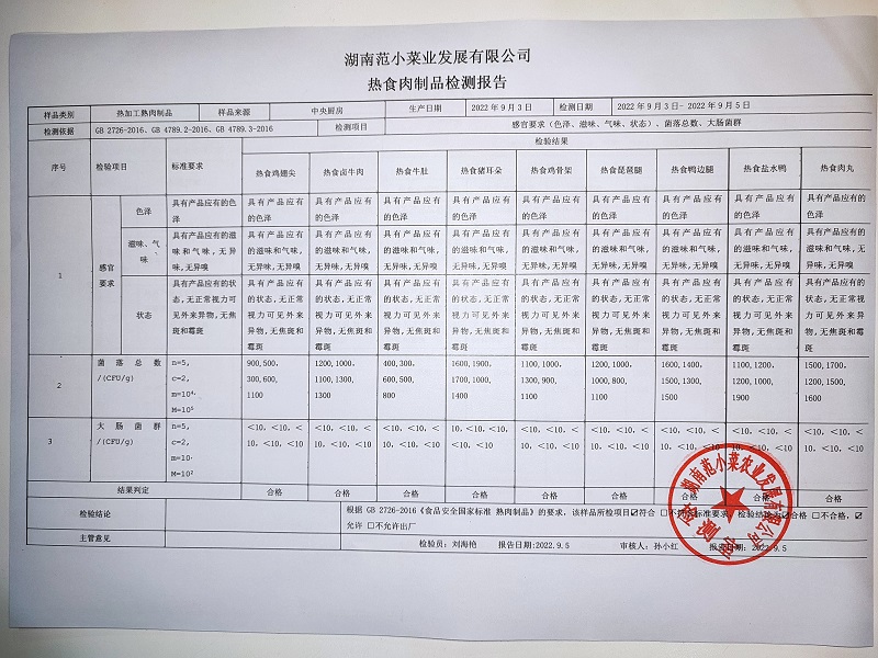 范小菜热食肉制品、热食调味料、意面、一品佳中点、水产、农残检