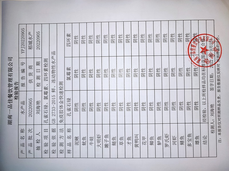 范小菜热食肉制品、热食调味料、意面、一品佳中点、水产、农残检测报告2022.09.5