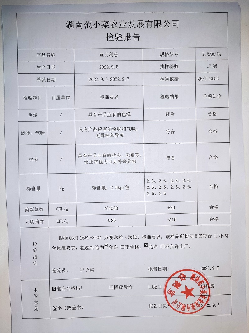 范小菜热食肉制品、调味料、 意面、 一品佳中点、水产、农残2022.09.7