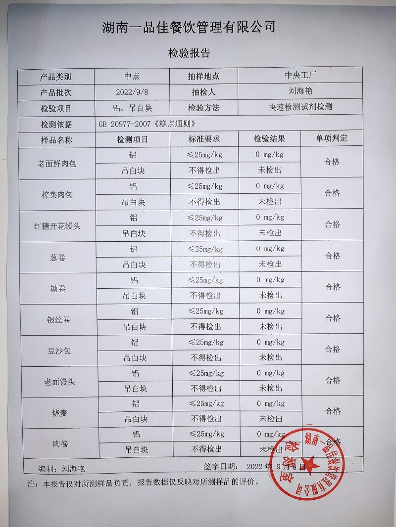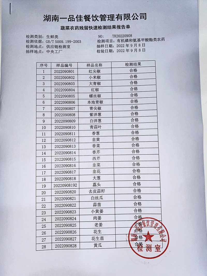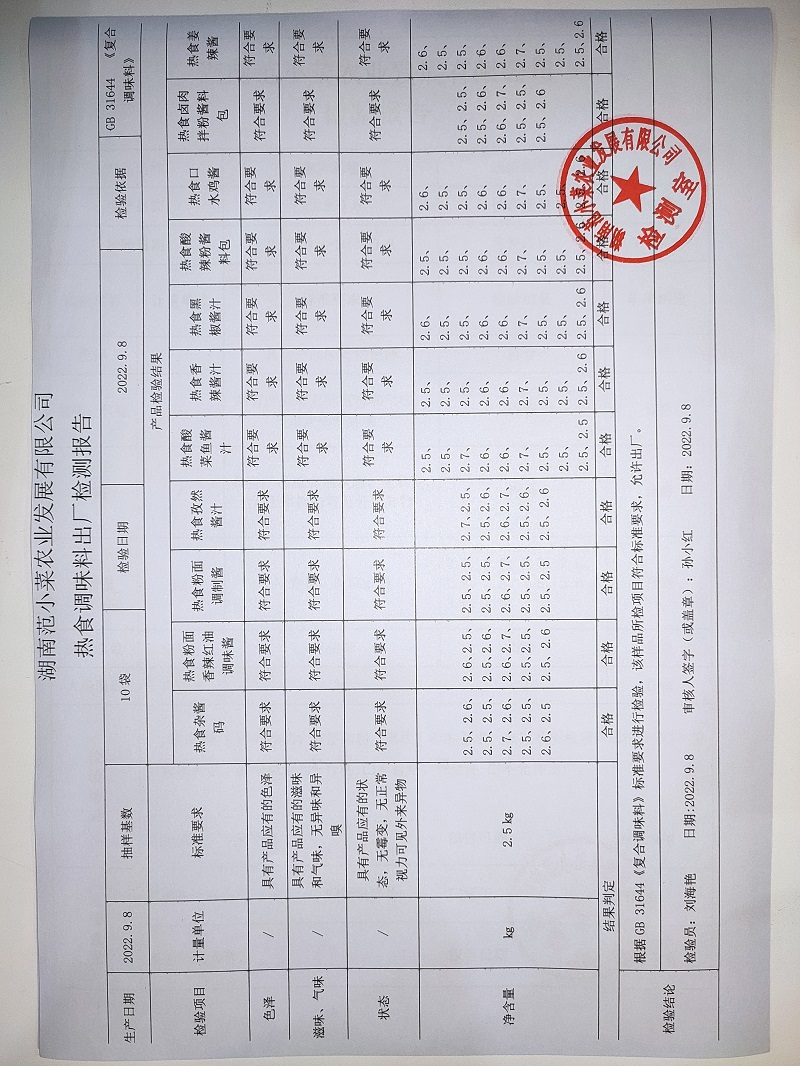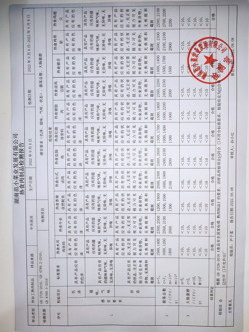 范小菜热食肉制品、调味料、 一品佳中点、水产、农残2022