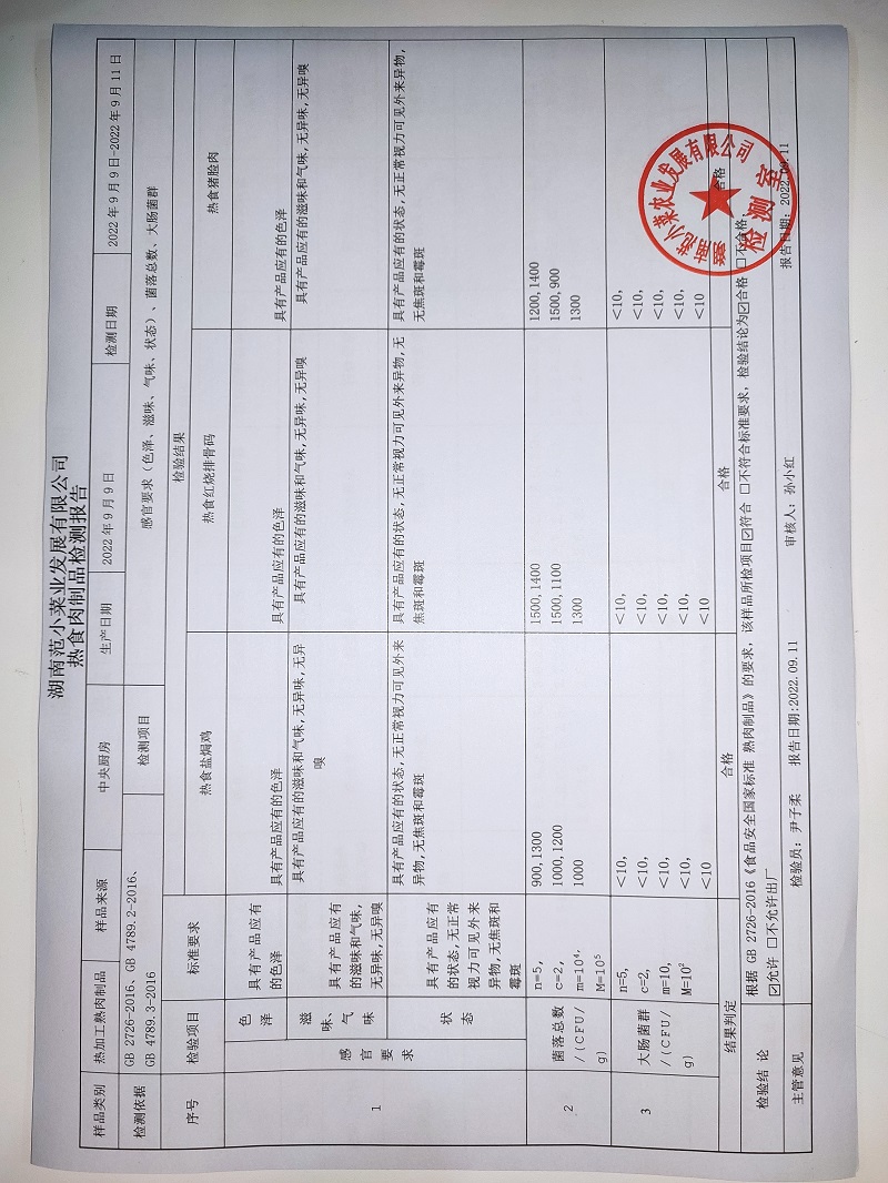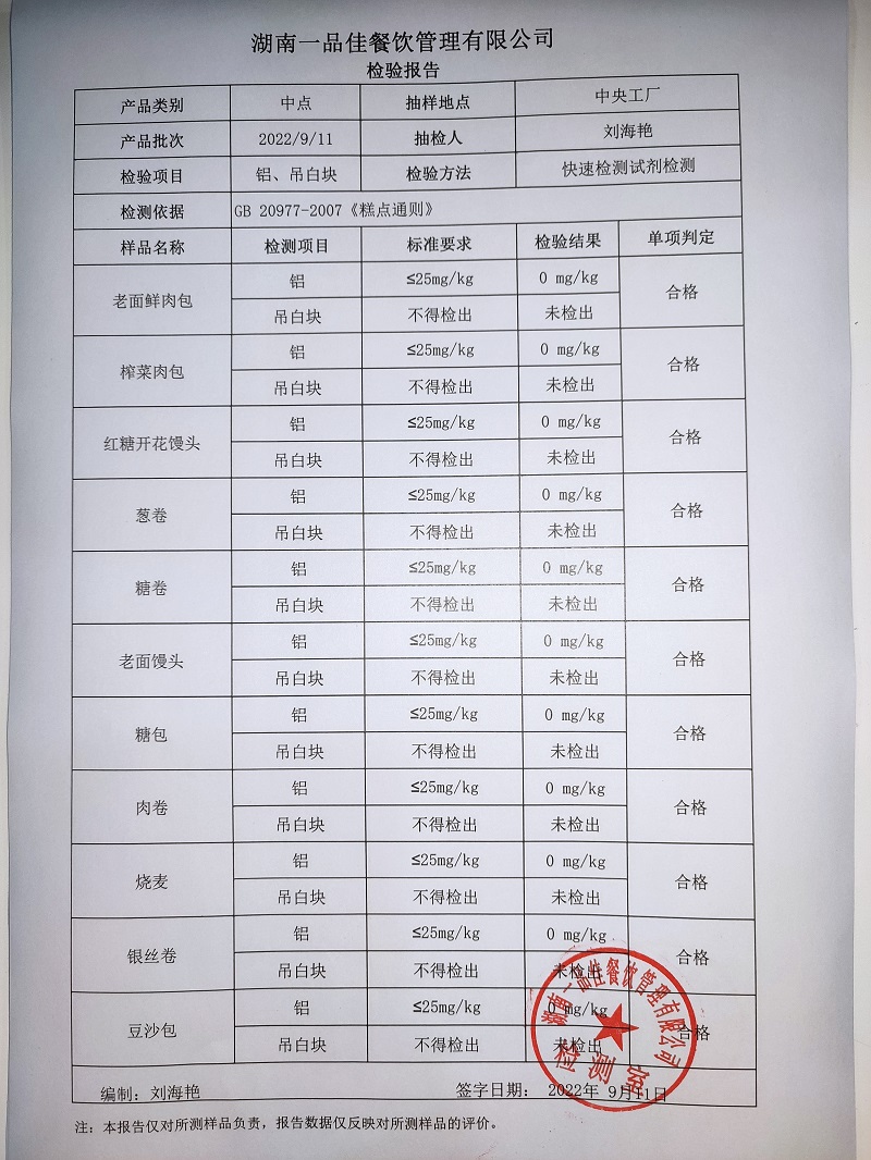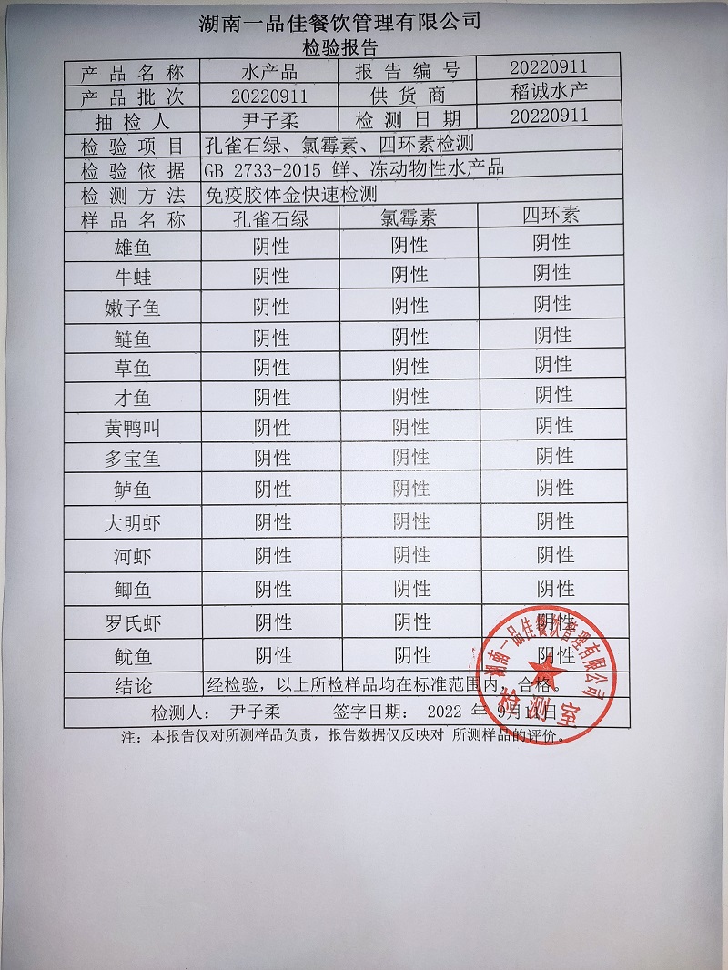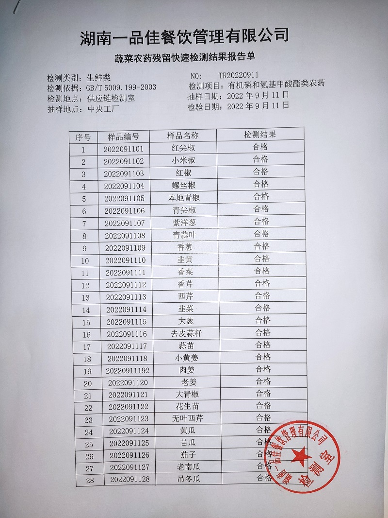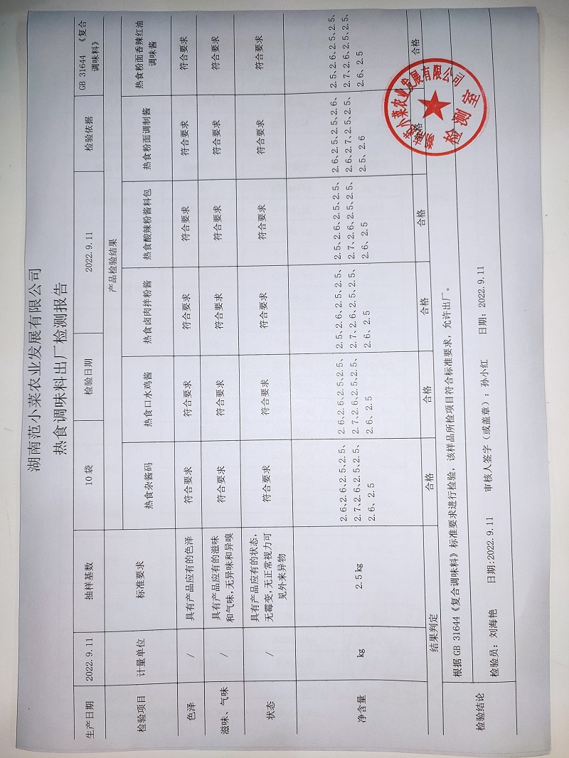 范小菜热食肉制品、调味料、 一品佳中点、水产、农残2022.9.11