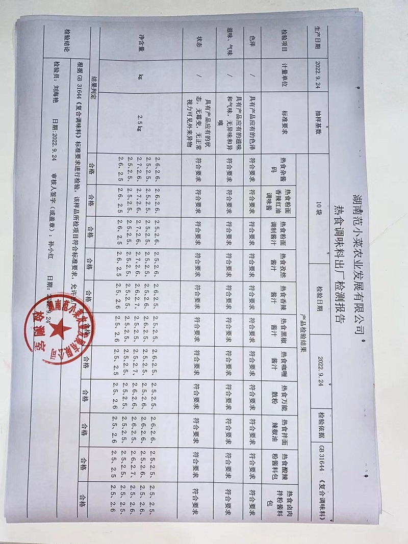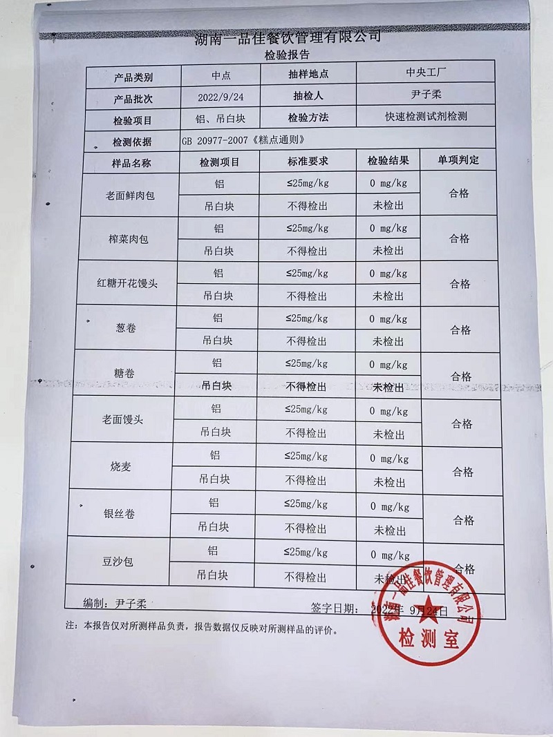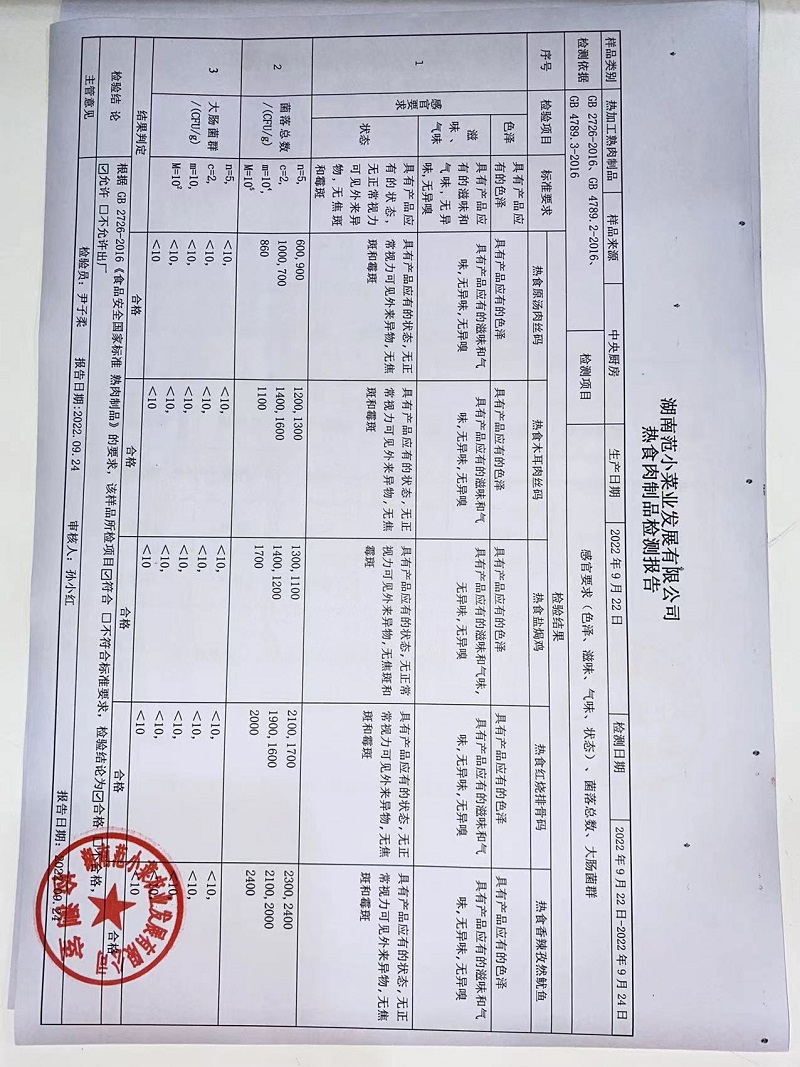 范小菜热食肉制品、调味料、 一品佳中点、水产、农残2022.09.24
