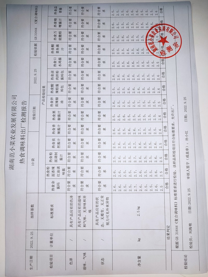 范小菜热食肉制品、调味料、 一品佳中点、水产、农残2022