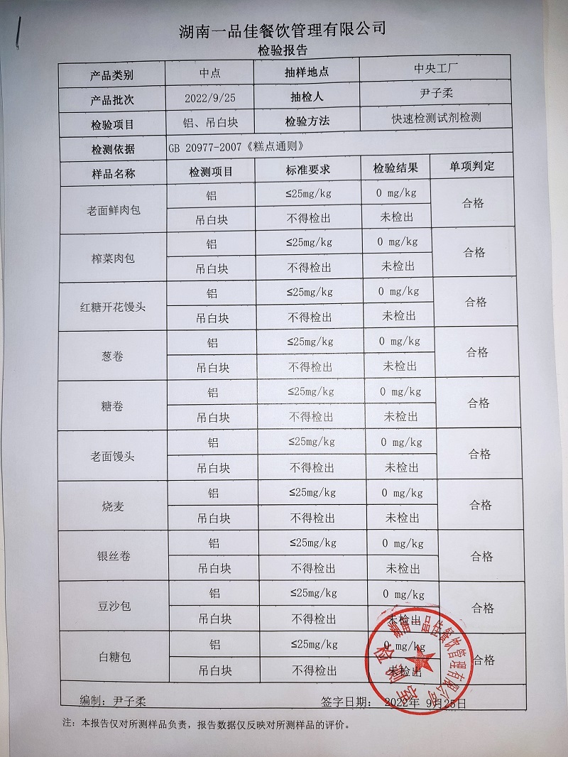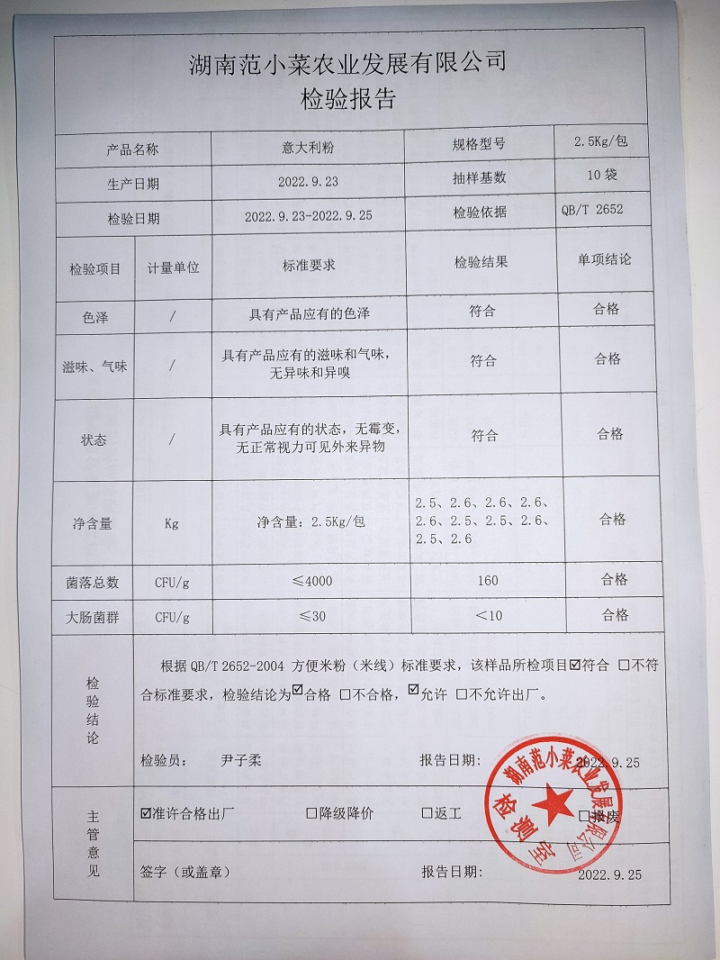 范小菜热食肉制品、调味料、意面、 一品佳中点、水产、农残2022.09.25