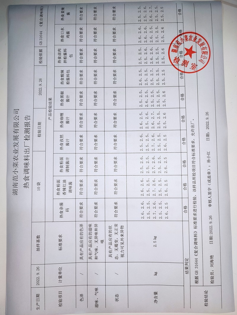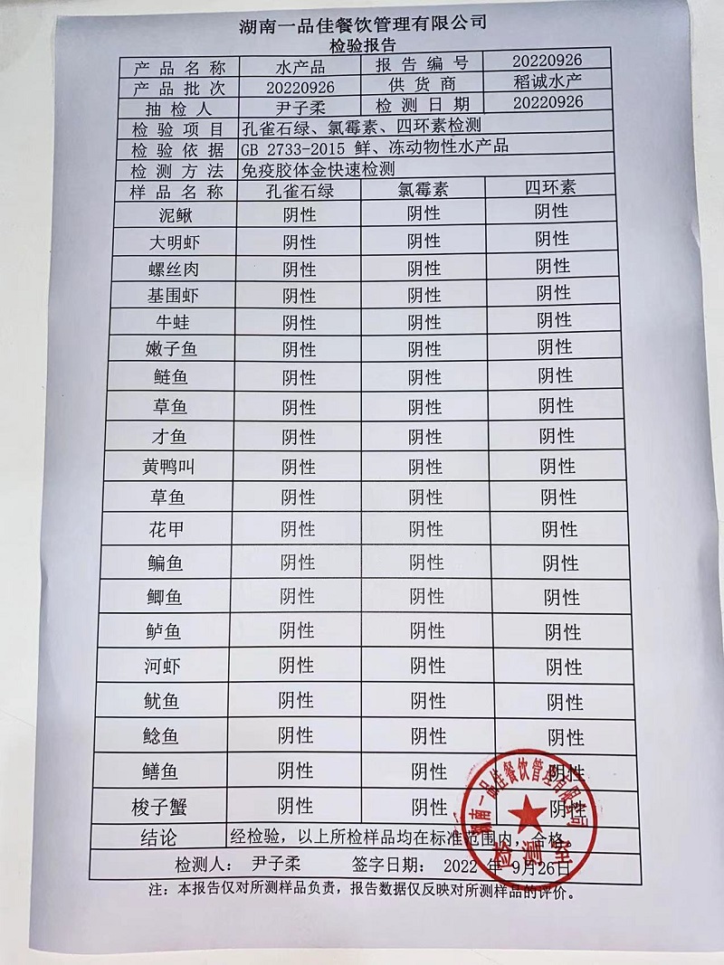 范小菜热食肉制品、调味料、意面、 一品佳中点、水产、农残2022.09.26