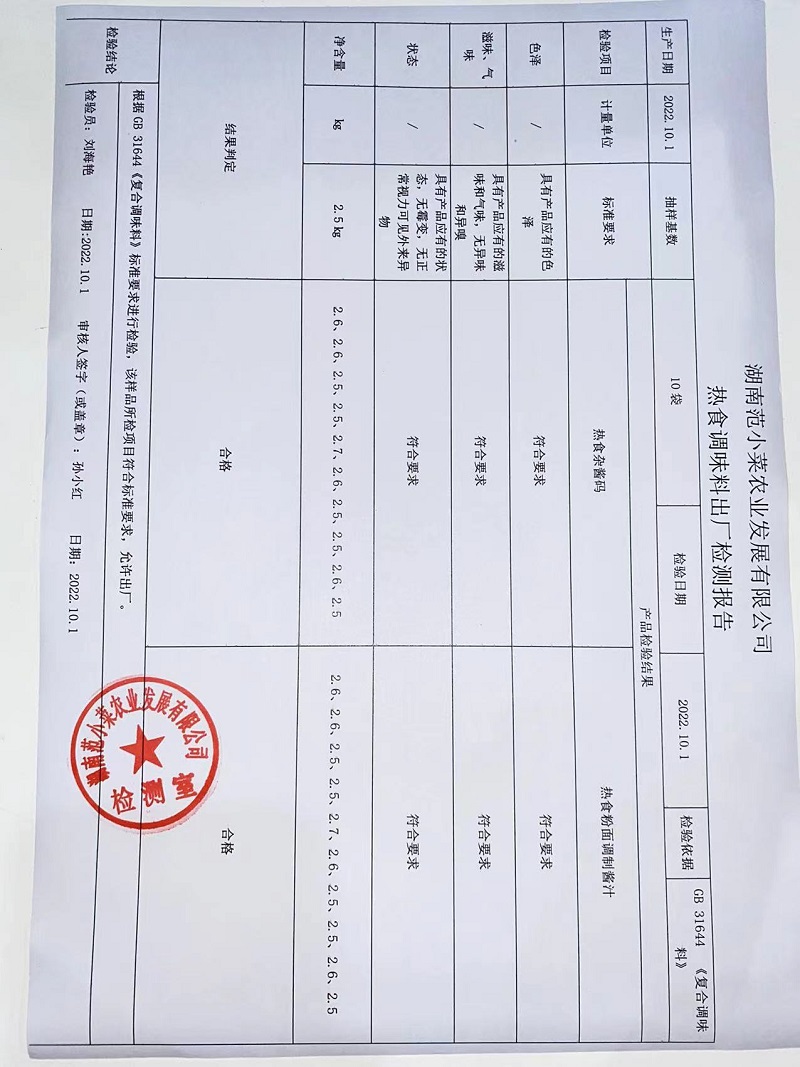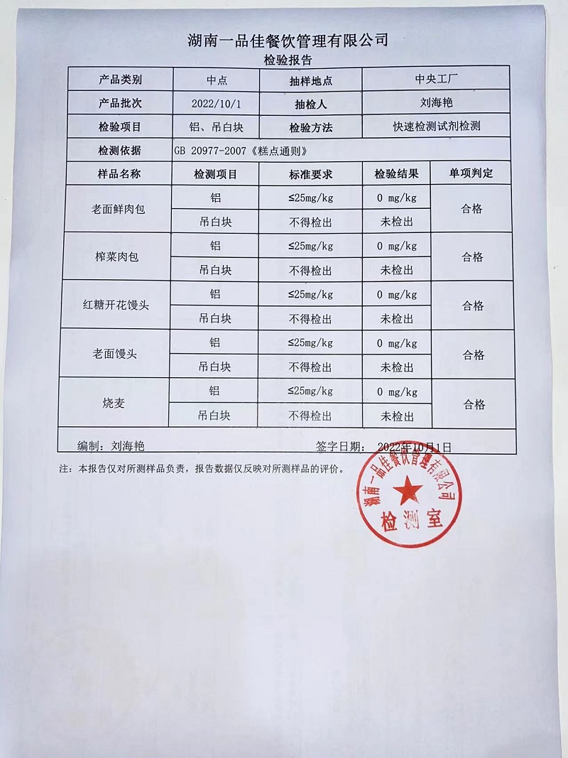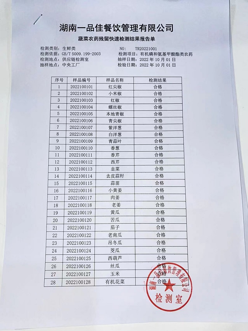 范小菜热食肉制品、调味料、 一品佳中点、水产、农残2022.10.01