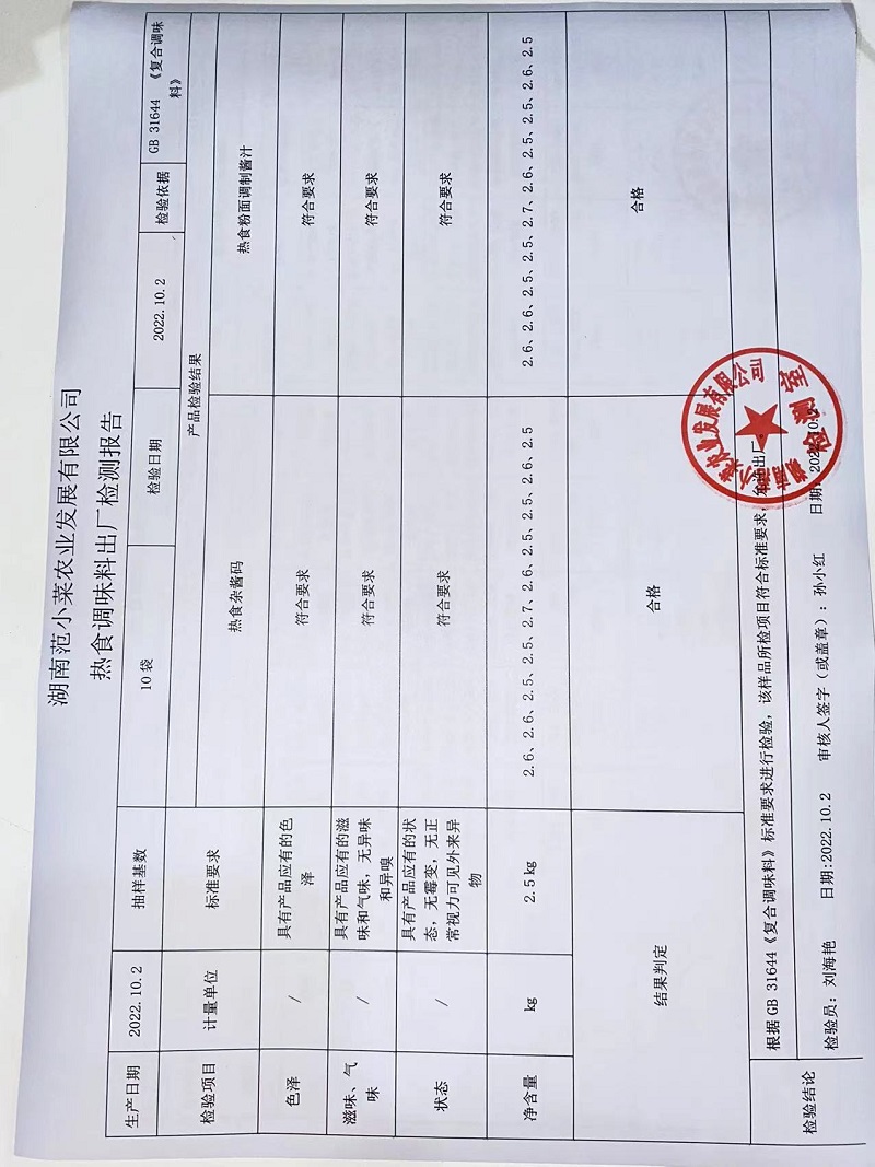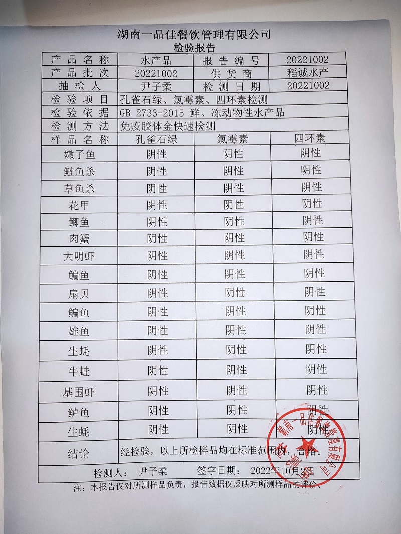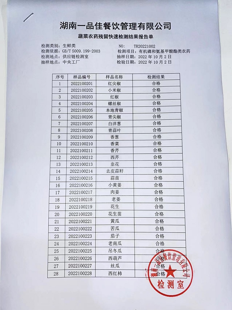 范小菜热食肉制品、调味料、 一品佳中点、水产、农残2022.10.2