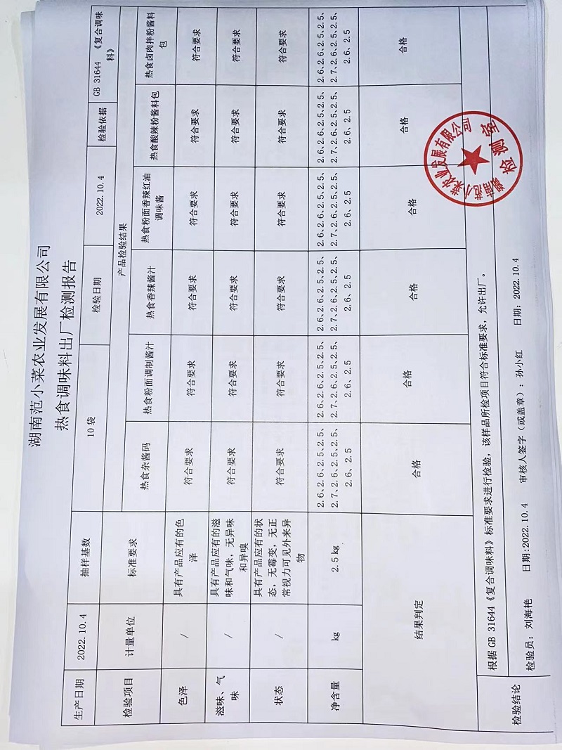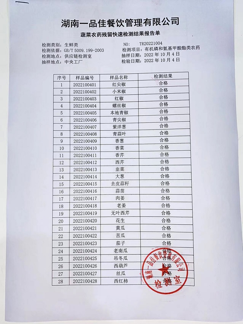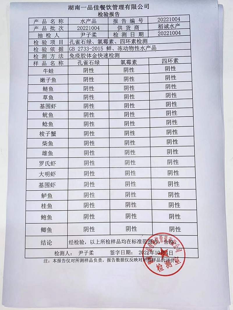 范小菜热食肉制品、调味料、 一品佳中点、水产、农残2022.10.04