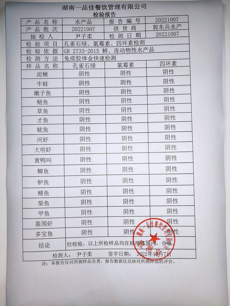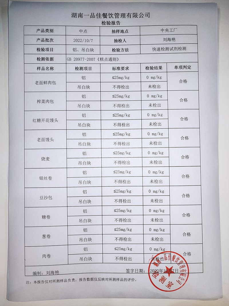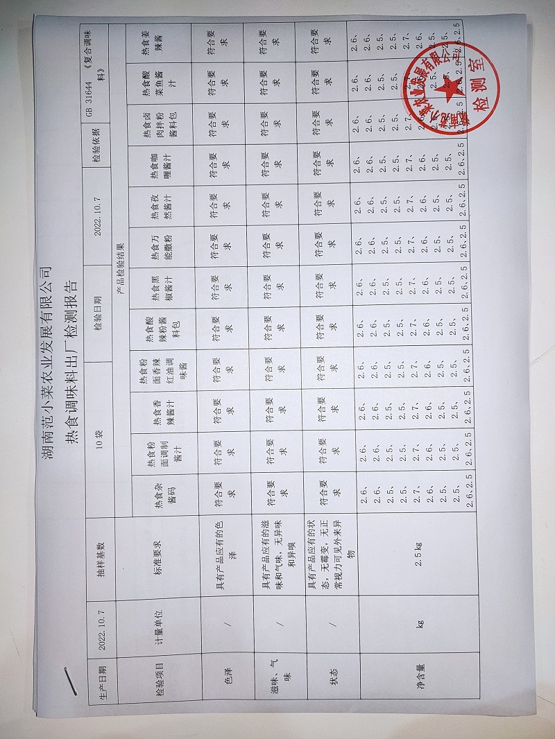 范小菜热食肉制品、调味料、 意面、一品佳中点、水产、农残2022.10.7