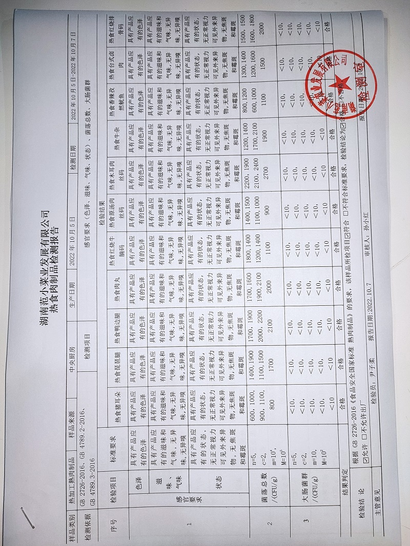 范小菜热食肉制品、调味料、 一品佳中点、水产、农残2022