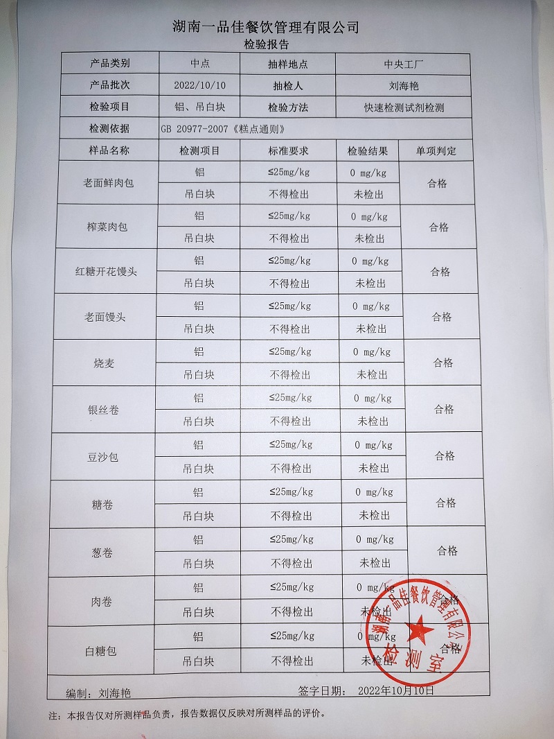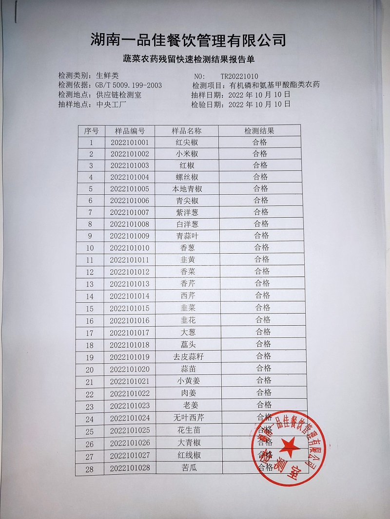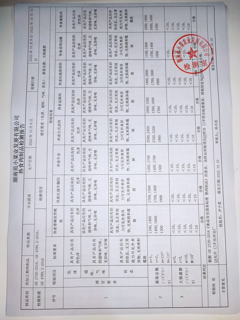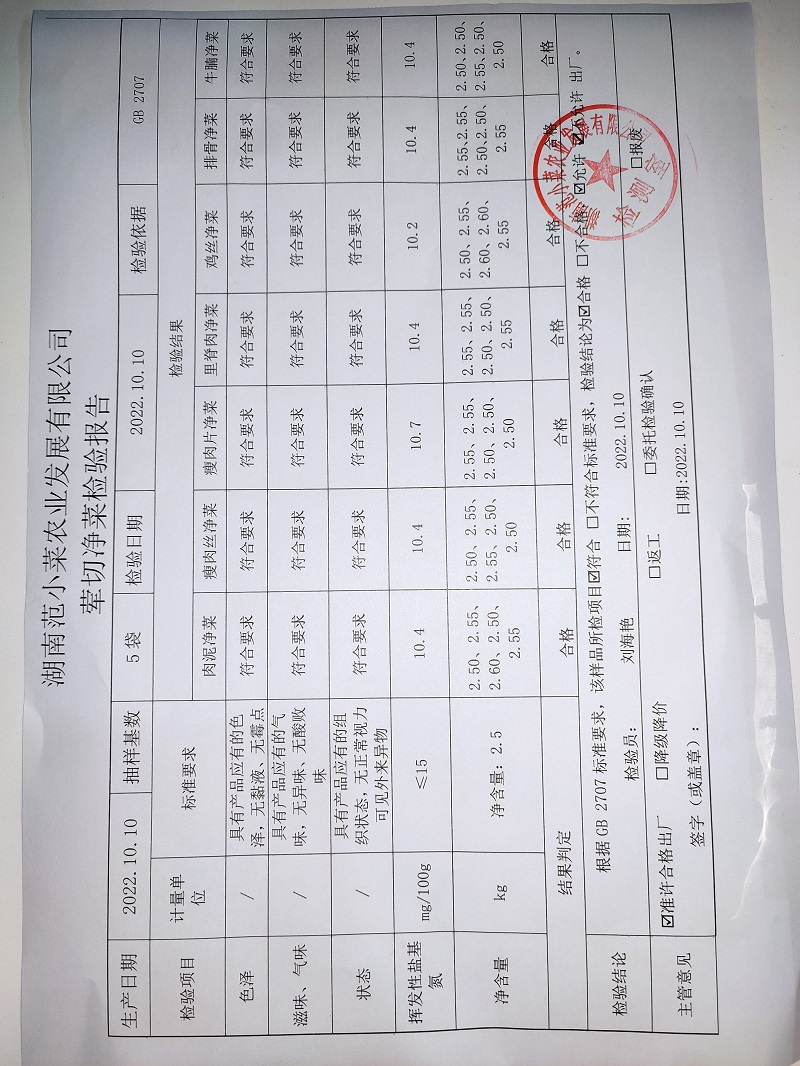 范小菜热食肉制品、调味料、净菜、 一品佳中点、水产、农残2022.10.10